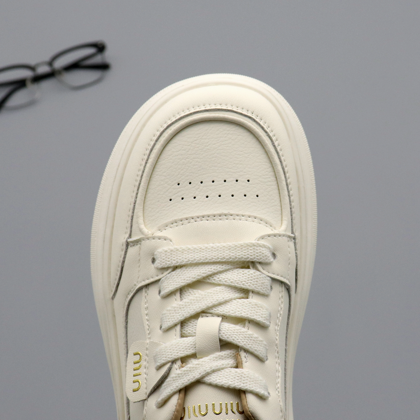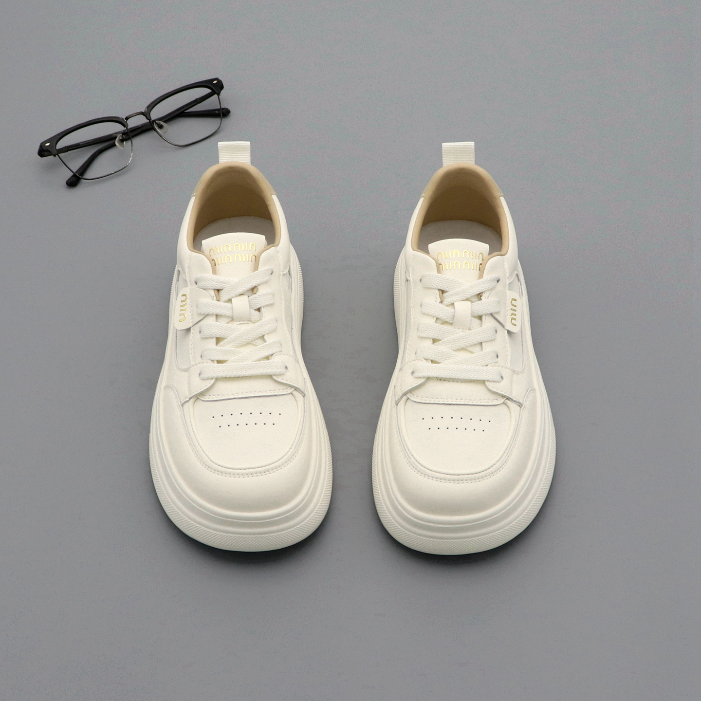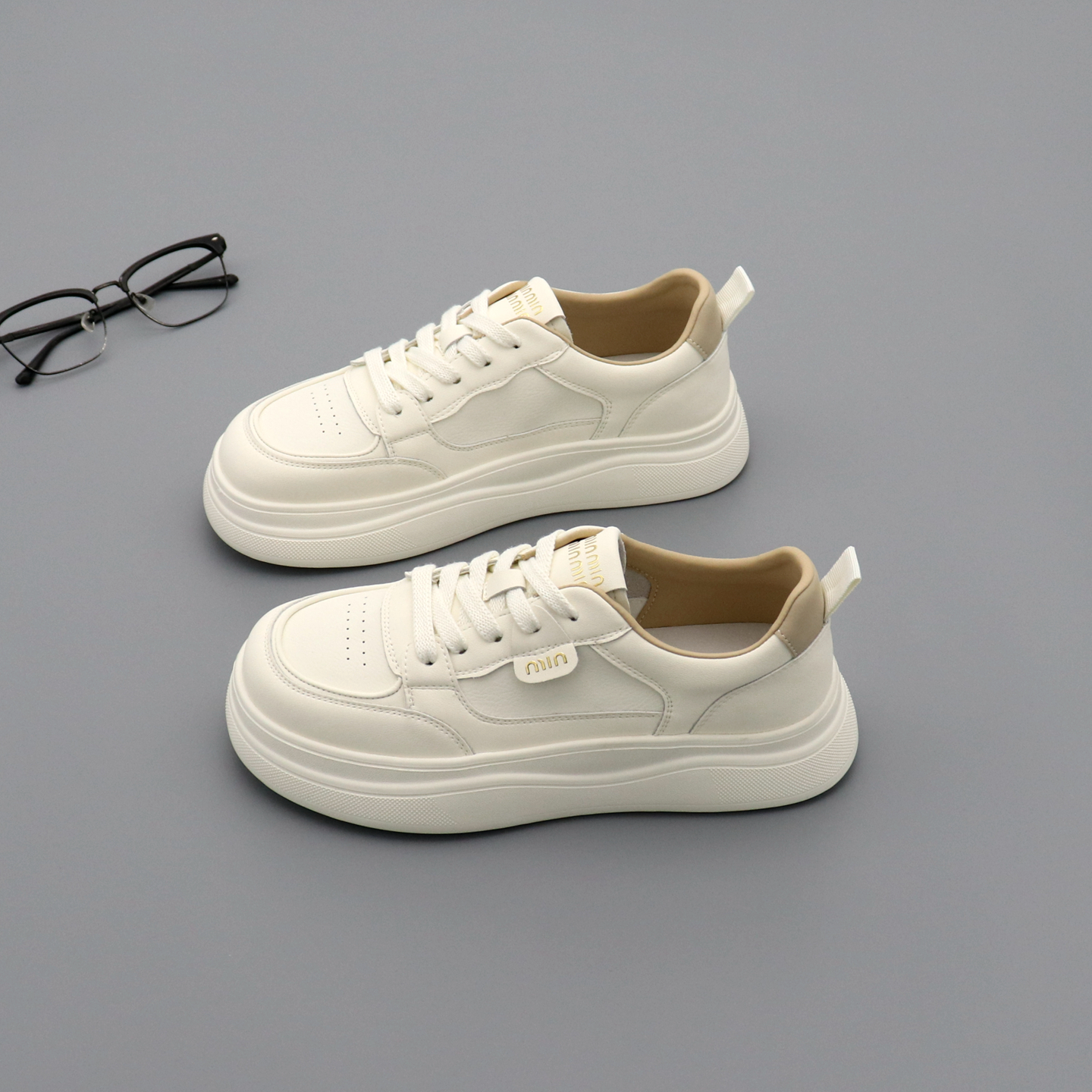 Hong Kong Genuine Leather Thick-Soled White Sneakers for Women 2025 Spring and Autumn New Versatile ins Round-Toe Flat Casual Sneakers Korean Style