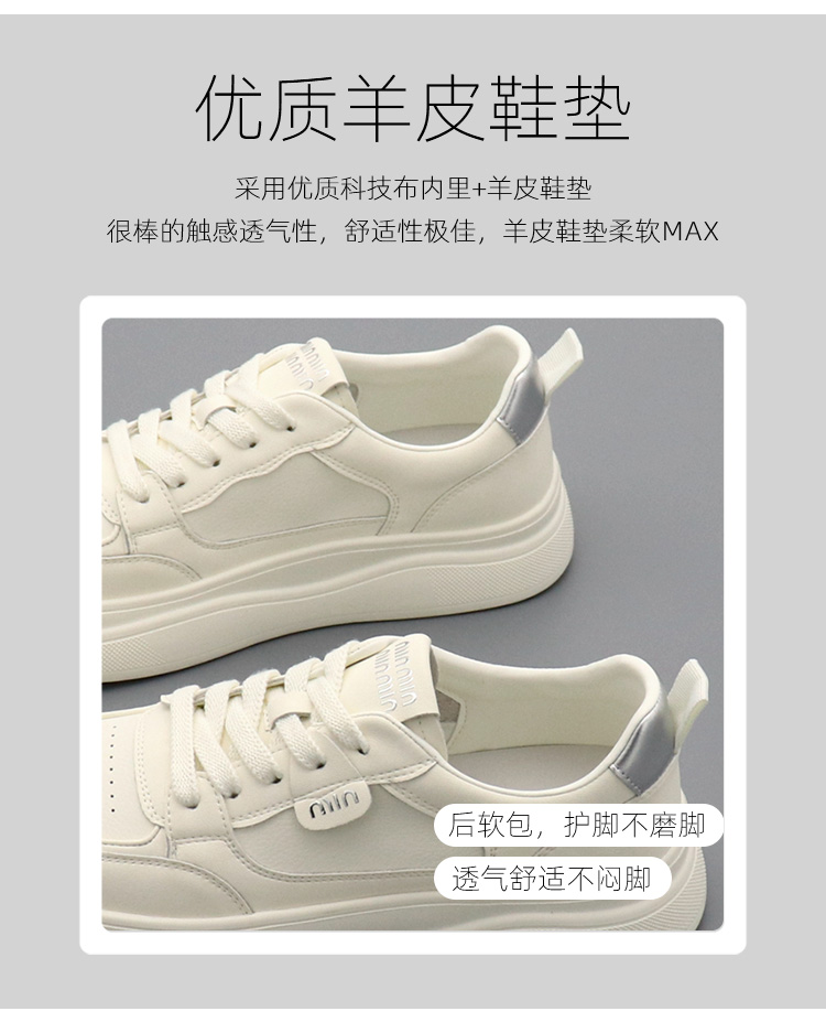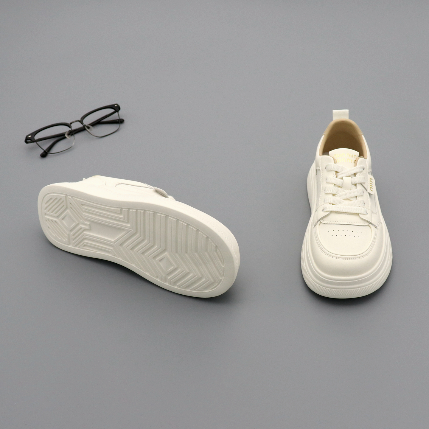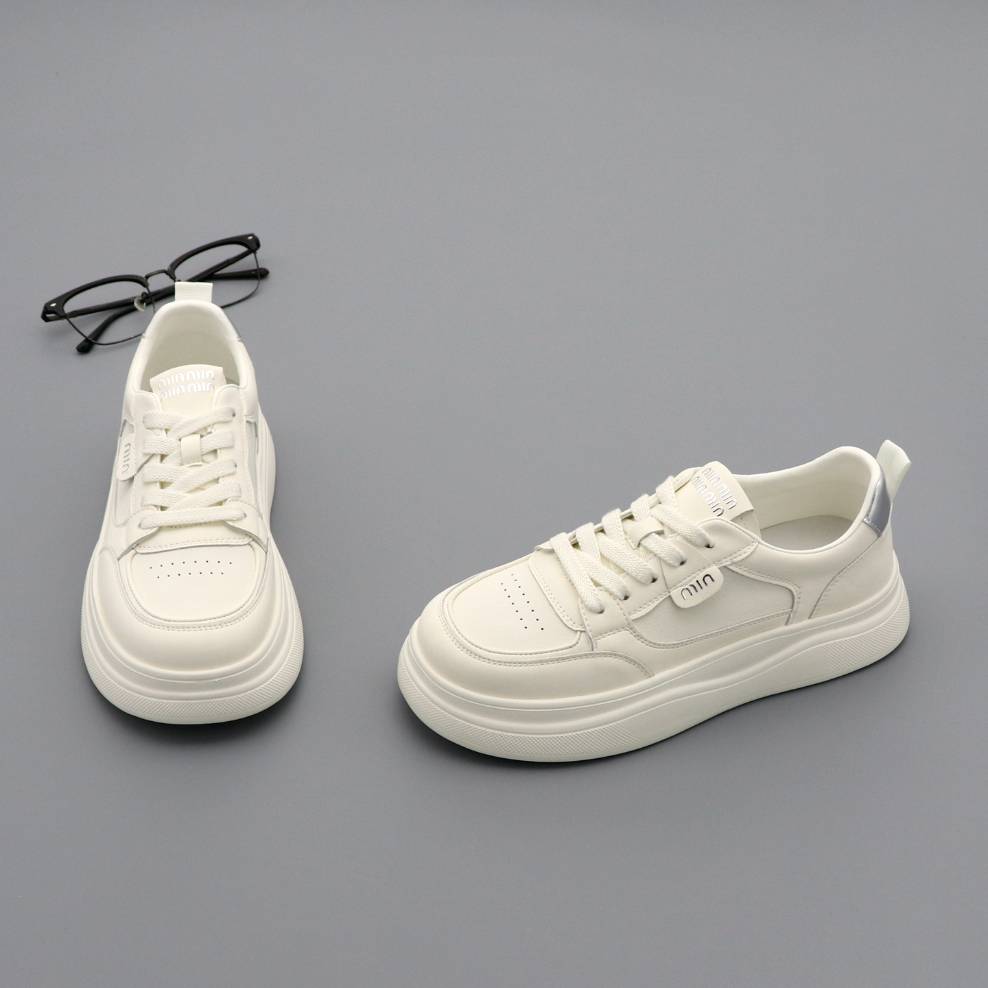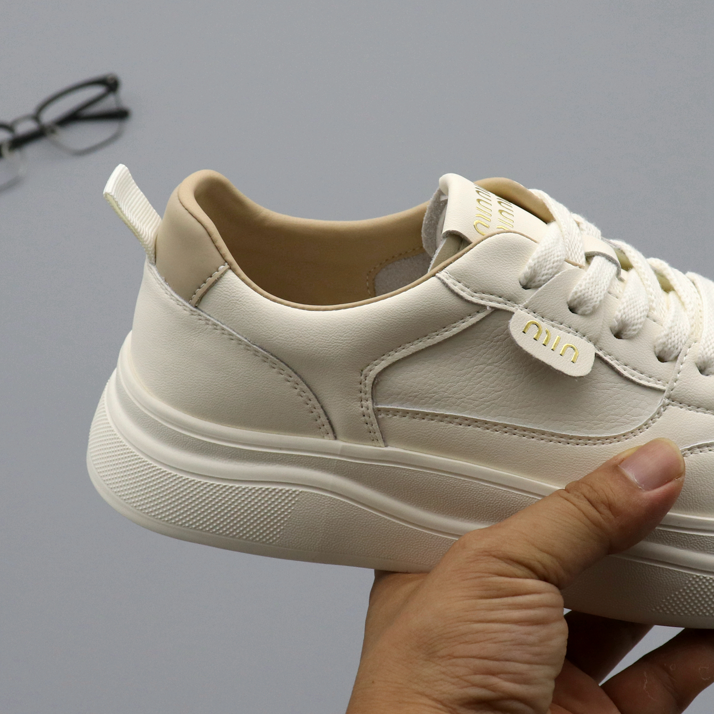Hong Kong Genuine Leather Thick-Soled White Sneakers for Women 2025 Spring and Autumn New Versatile ins Round-Toe Flat Casual Sneakers Korean Style