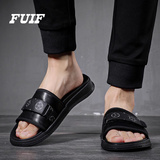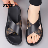 凉拖鞋男款潮牌夏季户外穿2025新款潮流外出男士高端皮面沙滩凉鞋