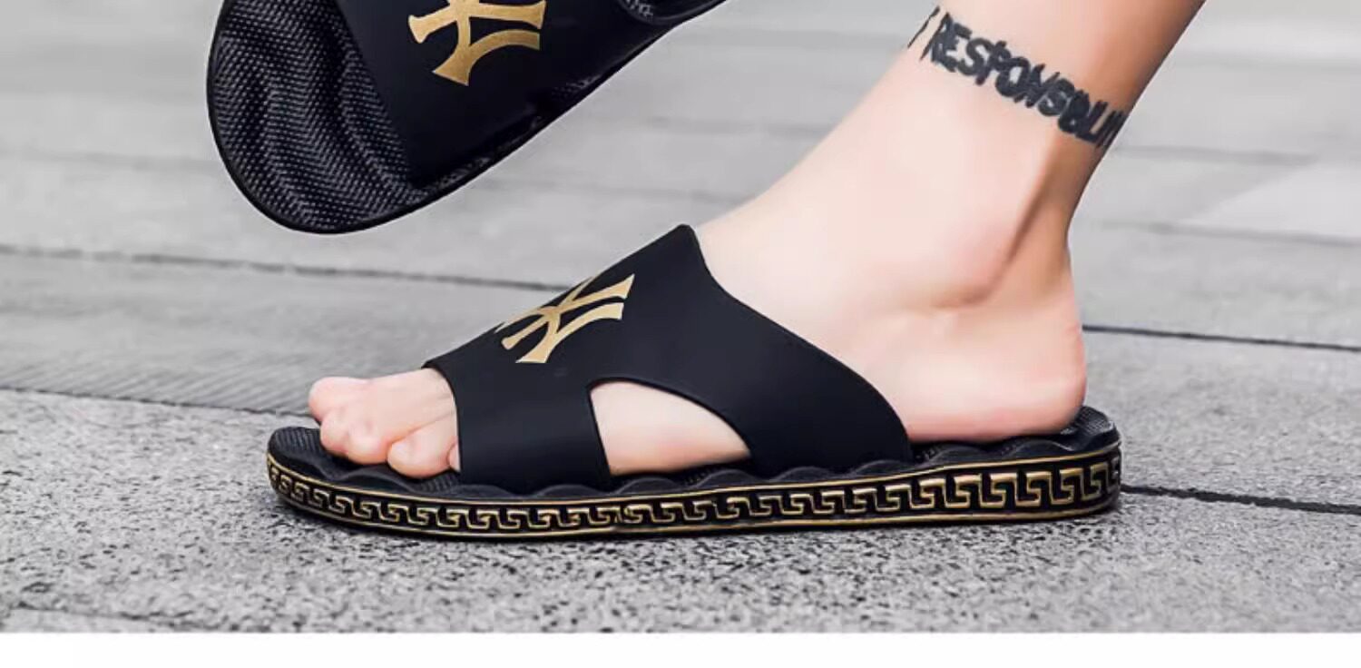 Men's Summer Trendy Outdoor Slippers, Anti-Odor, soft sole Cool Slippers, Outdoor Sports, Non-Slip, Wear-Resistant, Solid Color Beach Sandals