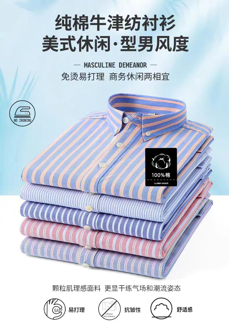 Paul 100% Cotton Striped Long-Sleeve Shirt for Men, Pure Cotton Oxford Fabric, Casual Plus-Size Shirt for Young and Middle-Aged Men
