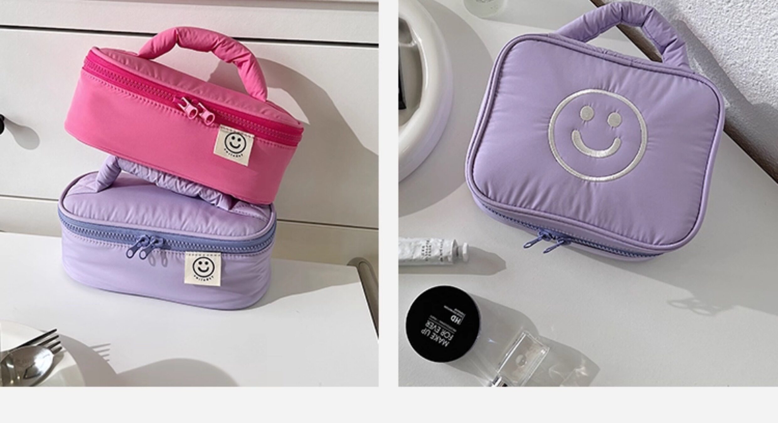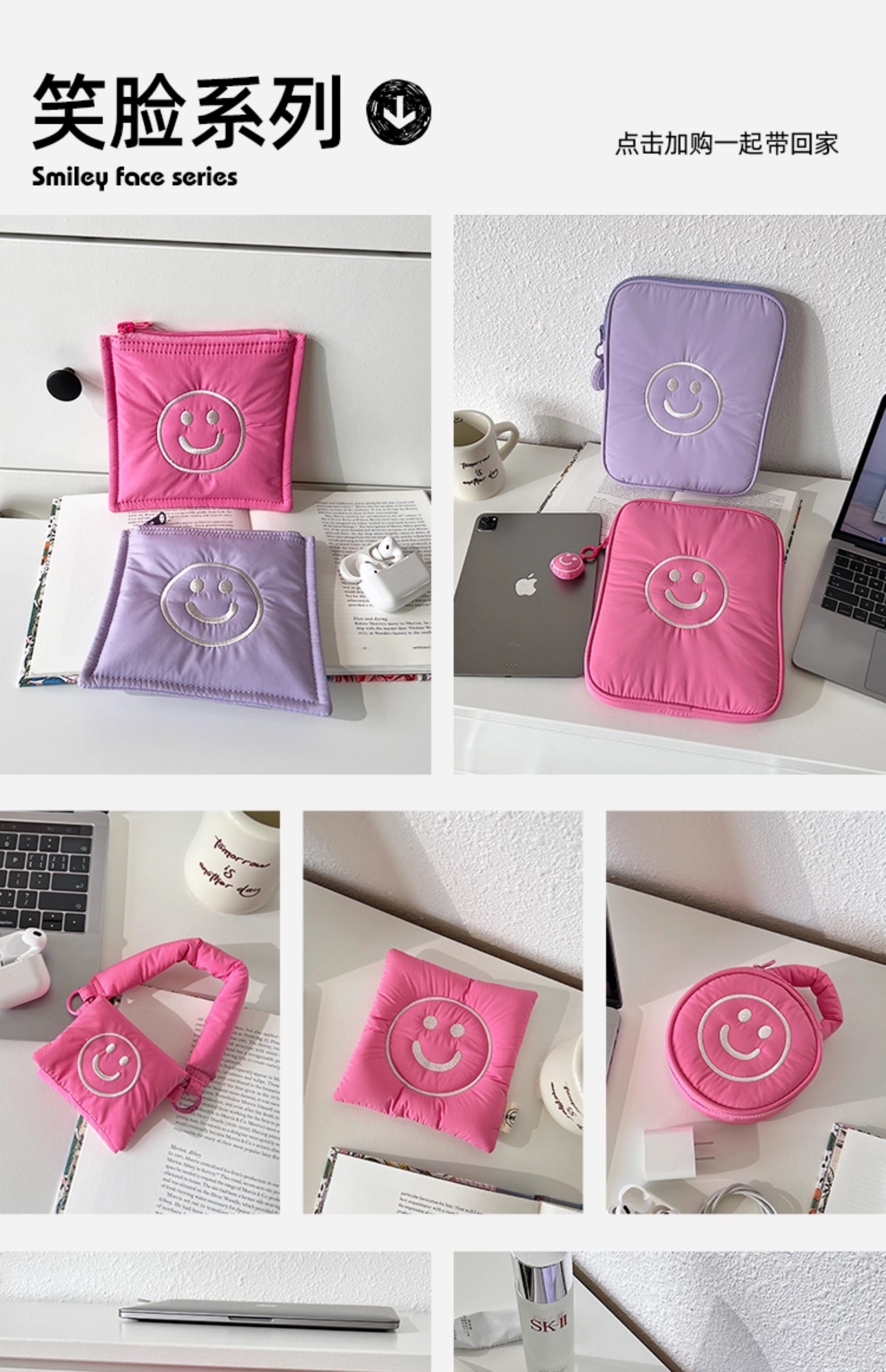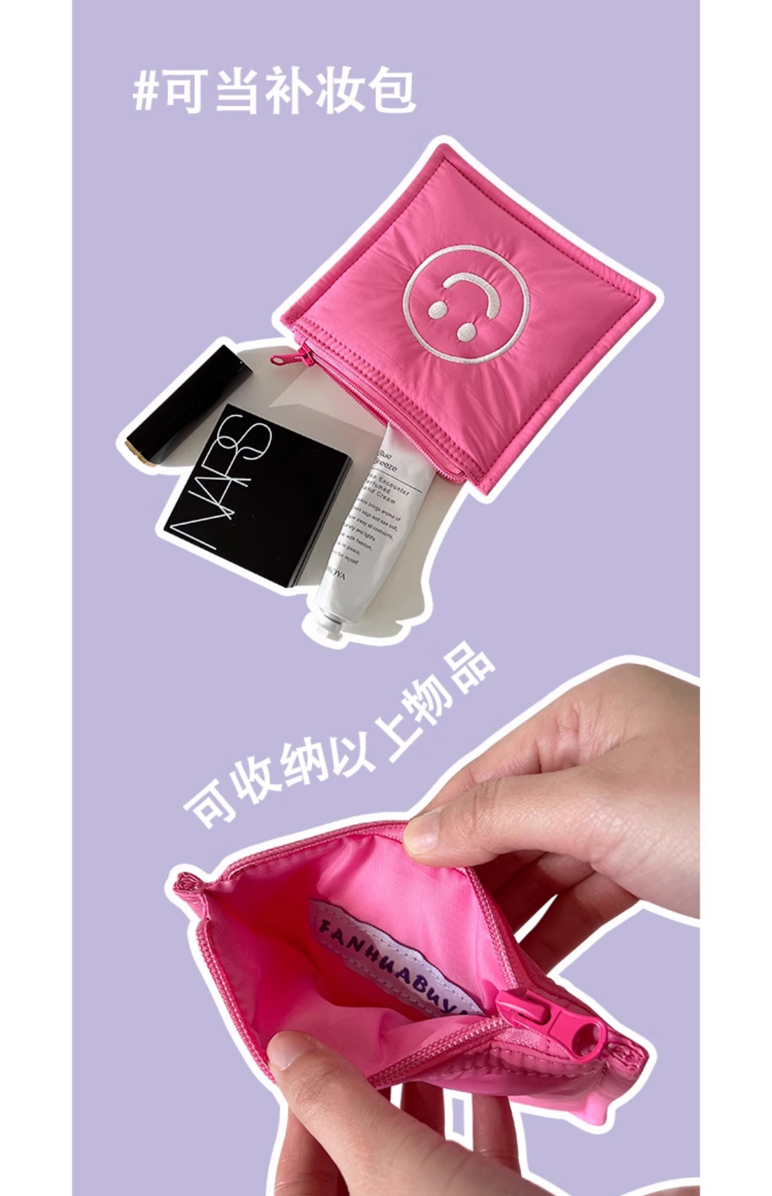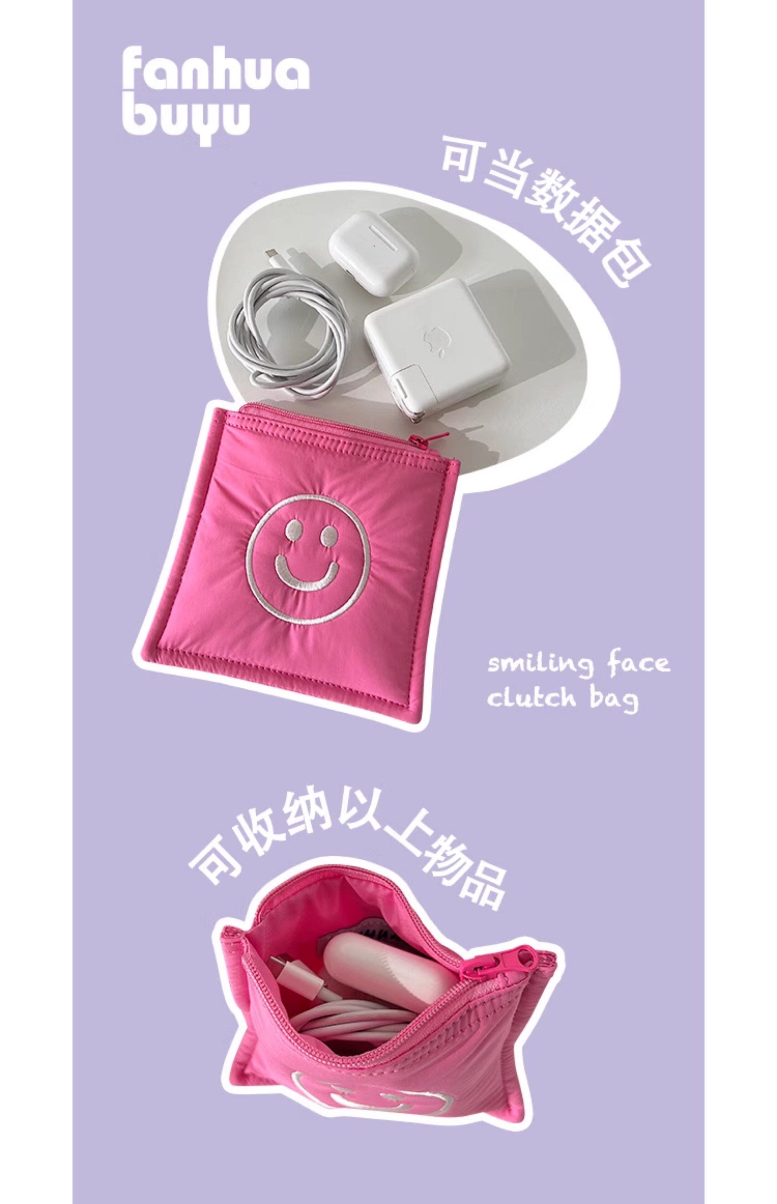 Cute Mini Makeup Bag for Women, Portable Fabric Coin Purse, Sanitary Pad Storage Bag, Smiley Face Clutch Bag