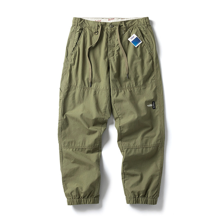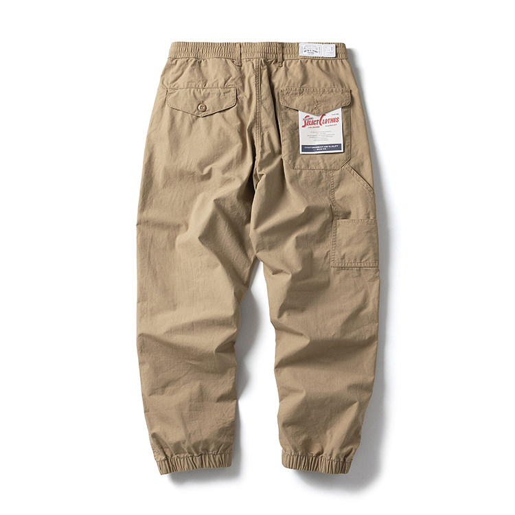 Japanese-Style Trendy Brand Simple Embroidered Cargo Pants for Men, Spring and Summer Thin Versatile Casual Pants, Loose Pure Cotton Washed Nine-Point Pants