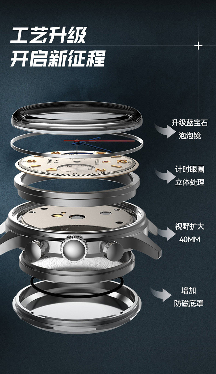 Seagull Watch Men's Mechanical Watch Multi-Functional Pilot Aviation Chronograph Men's Watch Seagull 1963