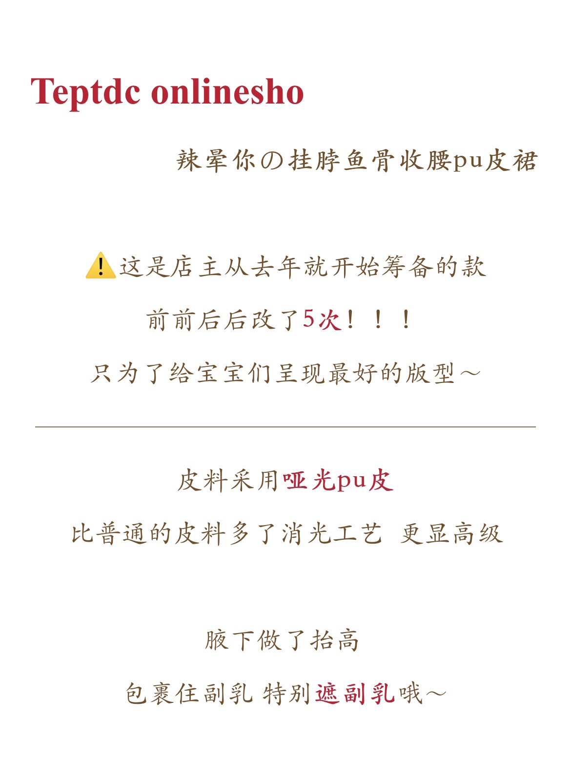 Teptdc | Halloween Little Devil Halter Neck Fishbone Waist-Cinching Pu Leather Skirt Super Popular Bodycon Skirt