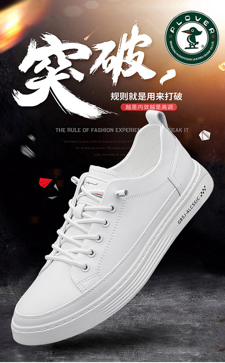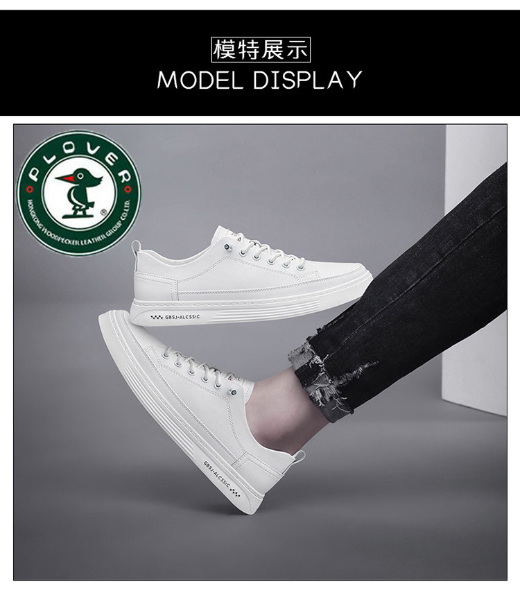 Woodpecker Men's Casual Sneakers 2026 Spring Genuine Leather Men's White Shoes Men's Cowhide Breathable White Trendy Shoes