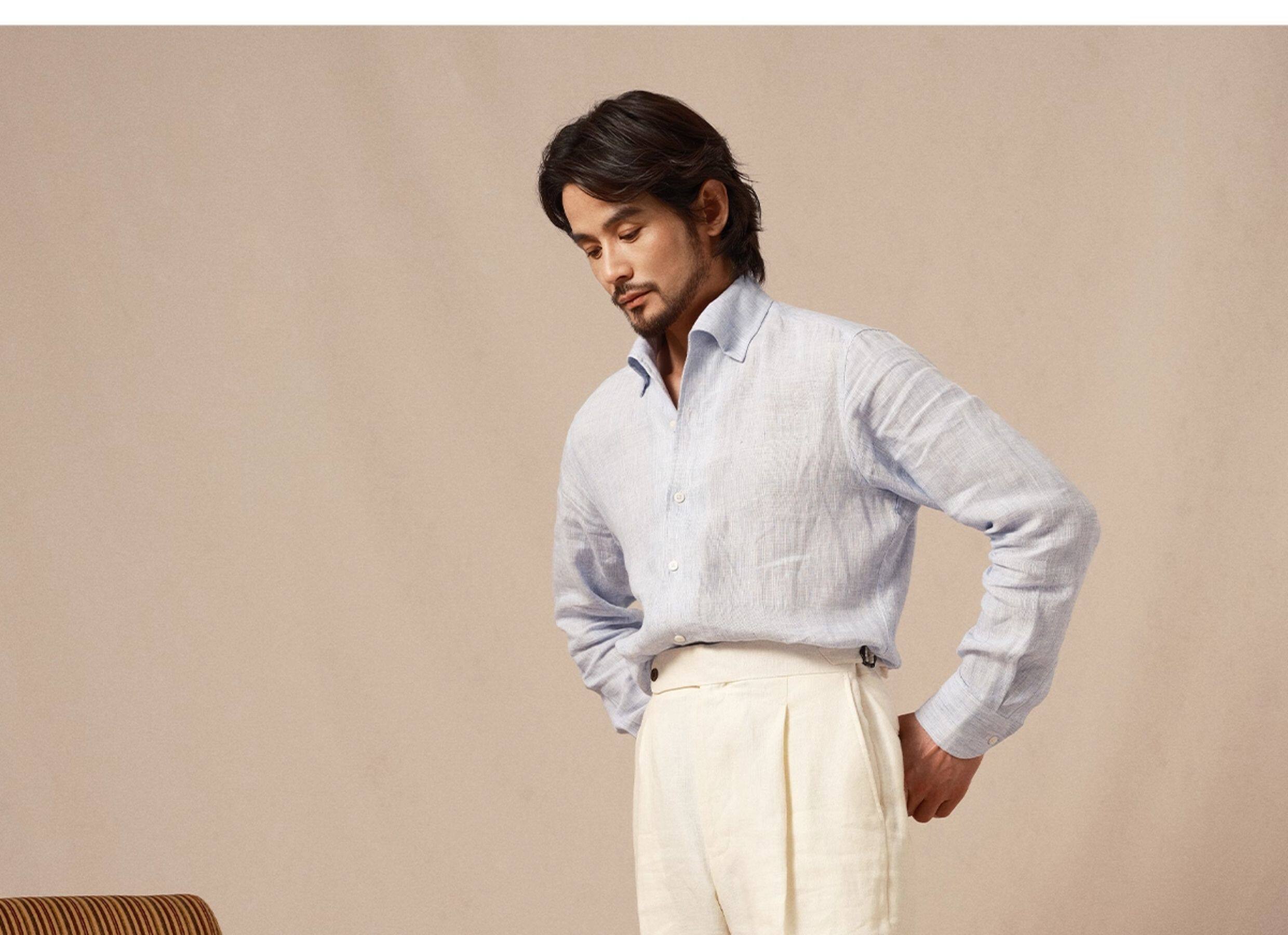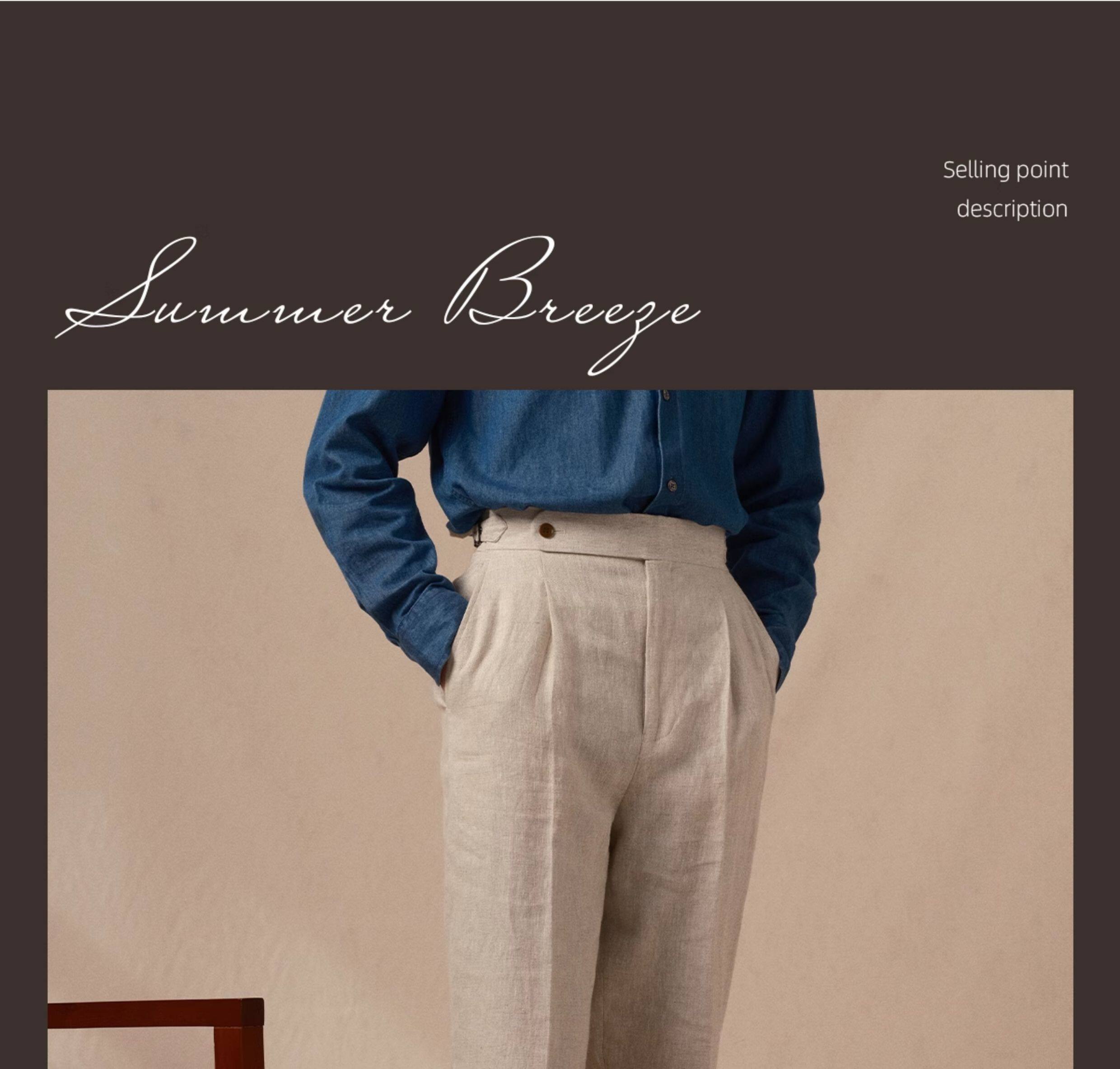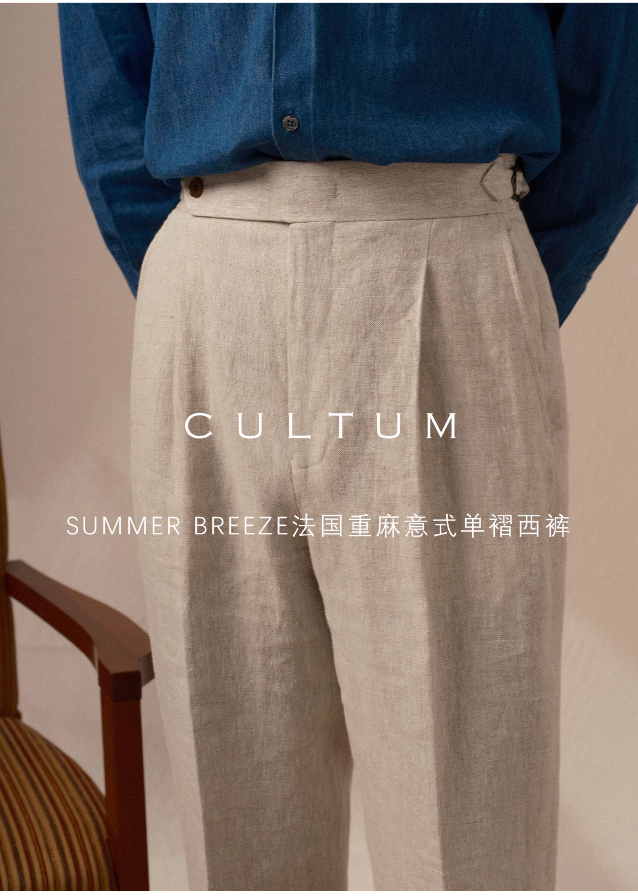Cultum Italian Naples Breathable Linen Pants Men's Casual Single-Pleat High-Waisted Dress Pants Straight-Leg Pants
