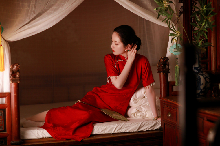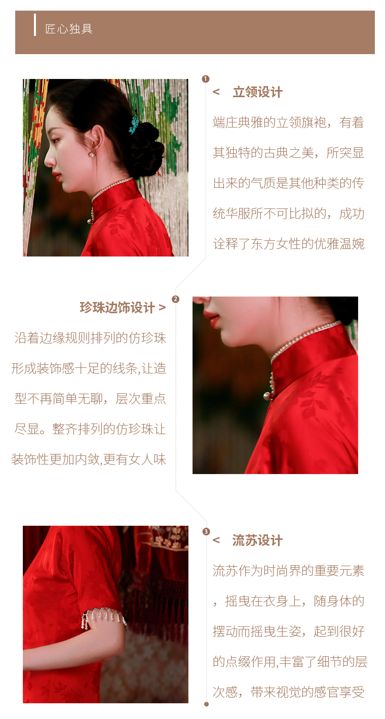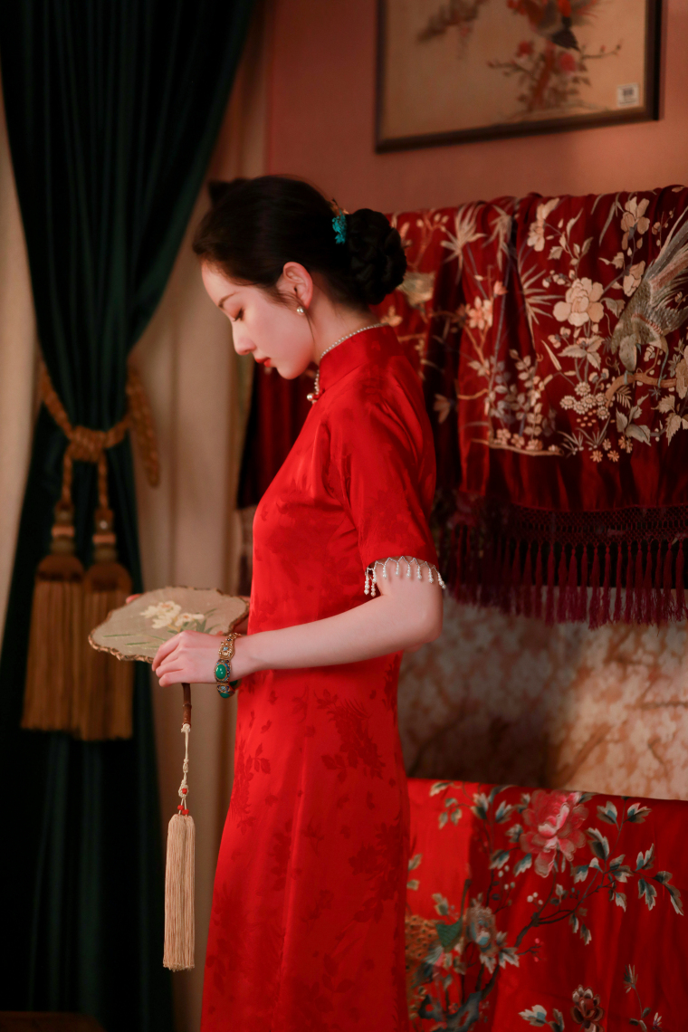 Floral Red Beauty | a City of Wind and Snow | Spring and Summer Red Jacquard Satin Vintage Toasting Cheongsam Wedding Festive Bride Outfit