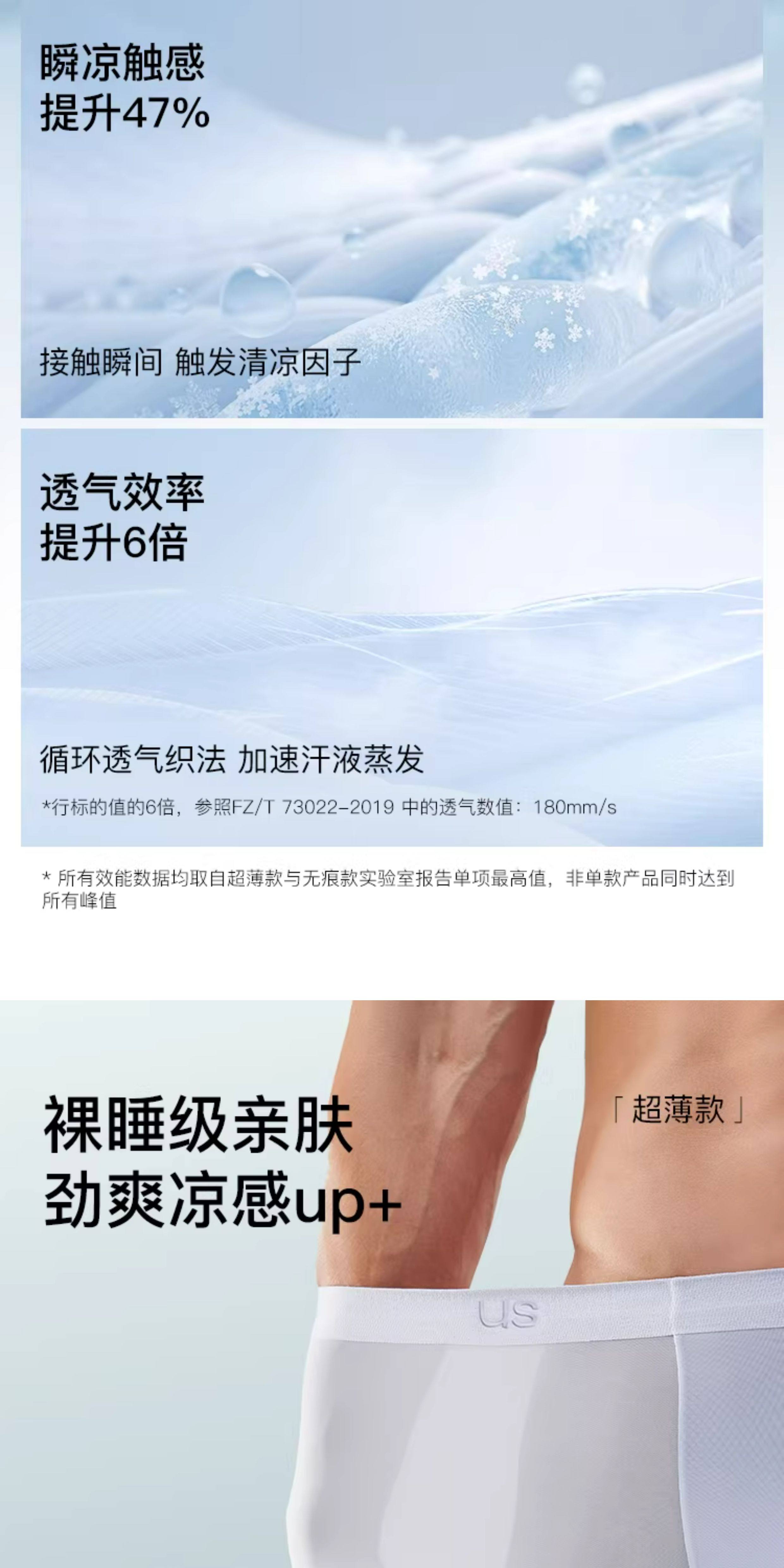 Ubras Ice Silk Underwear for Men, Cool and Breathable in Summer, Lightweight, Pure Cotton, 7A Antibacterial Crotch, Small Cool Breeze Boxer Shorts