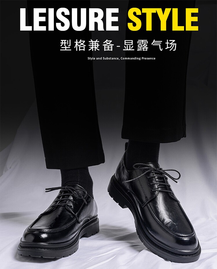 Business Formal Leather Shoes for Men, Genuine Leather Casual Shoes, Men's Shoes, Groom's Wedding Shoes, Height Increasing Shoes Within 8/10cm, Derby Shoes