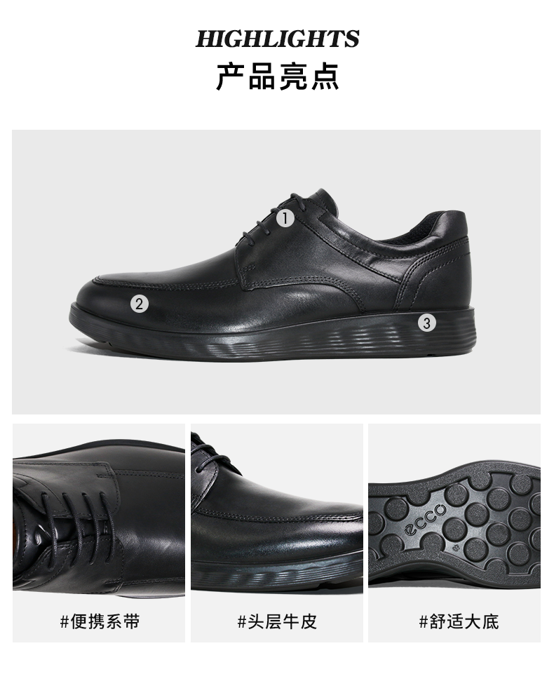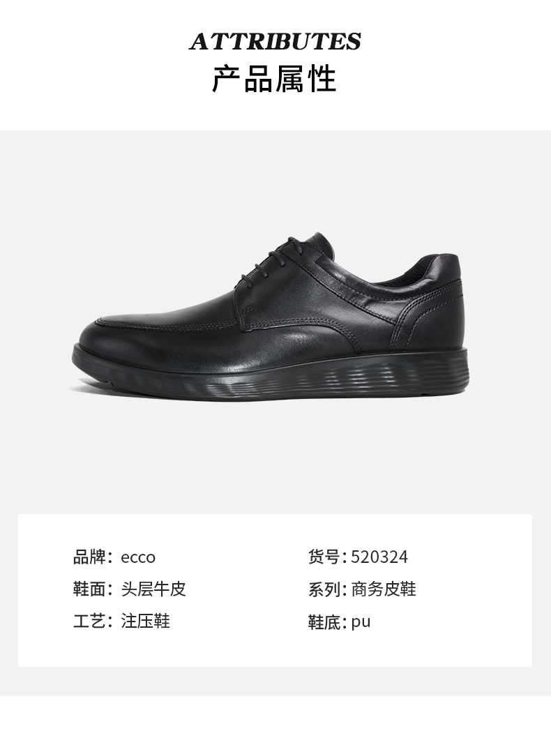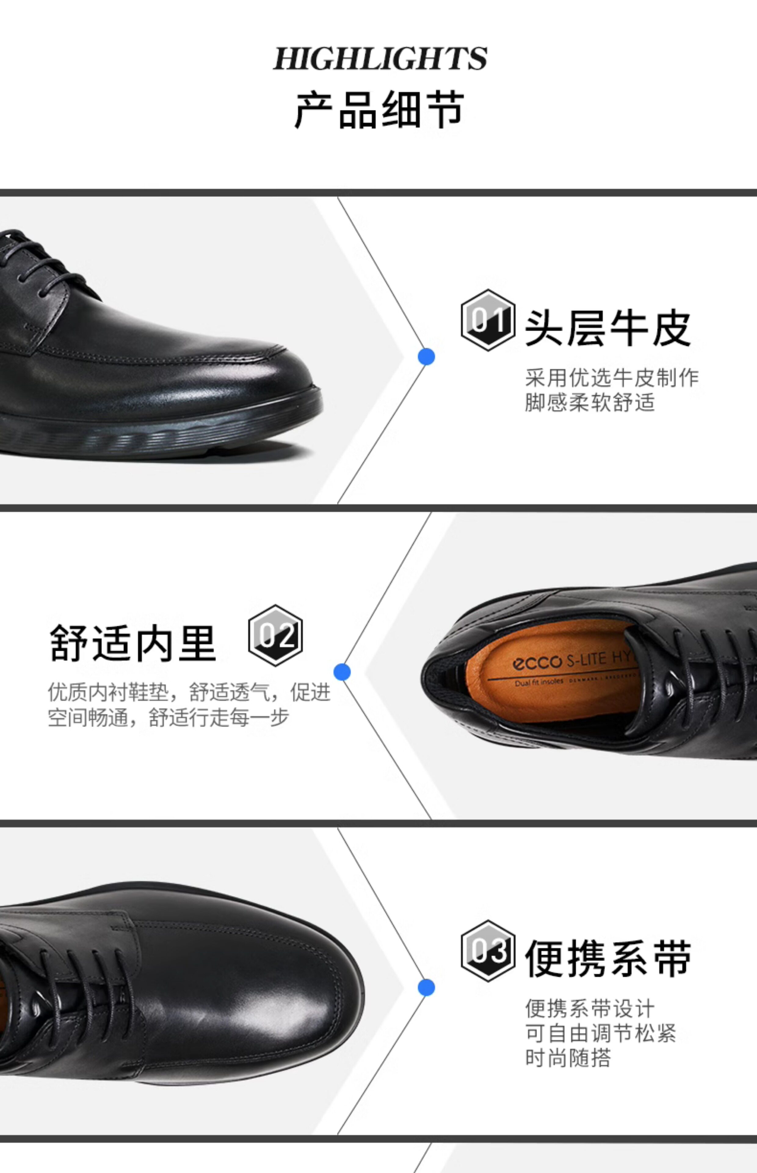 Ecco New Business Men's Shoes Spring Comfortable Commuter Derby Leather Shoes Lightweight Hybrid 520324 Domestic Stock