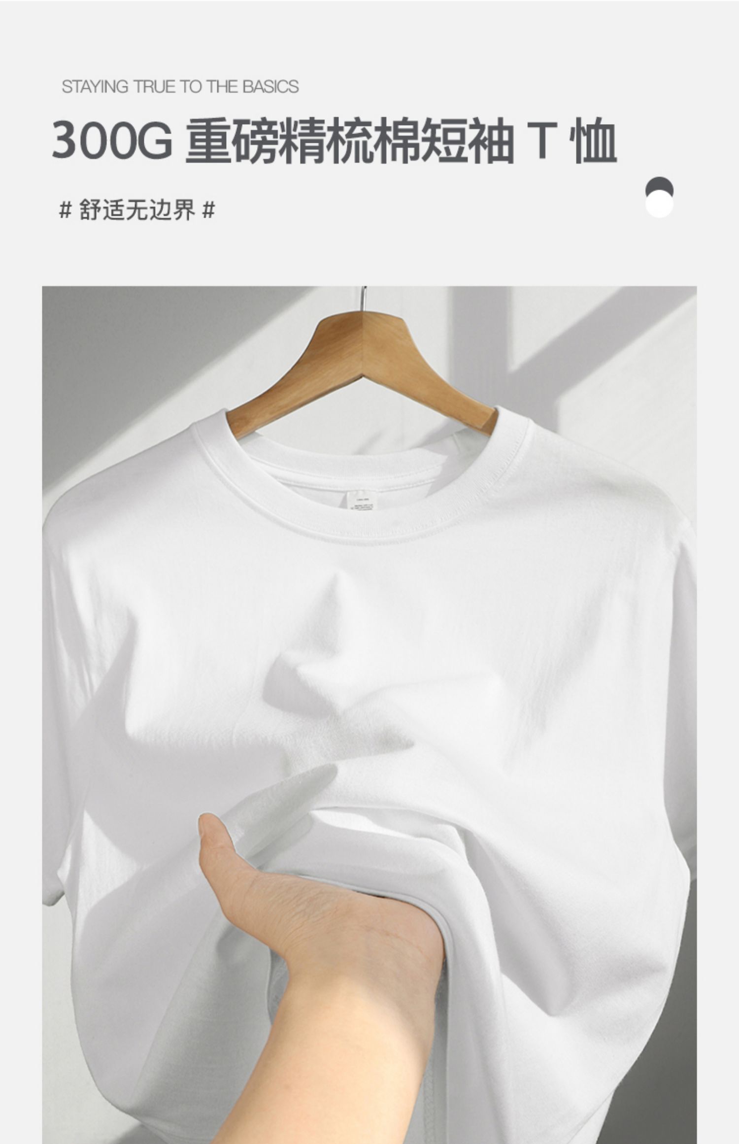 Xinjiang Cotton 300g Heavyweight Thick Non-Transparent Pure Cotton Short-Sleeve T-Shirt for Men and Women, Solid Color, Round Neck, Loose Fit, Student, Plus Size, Summer
