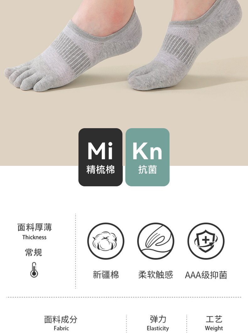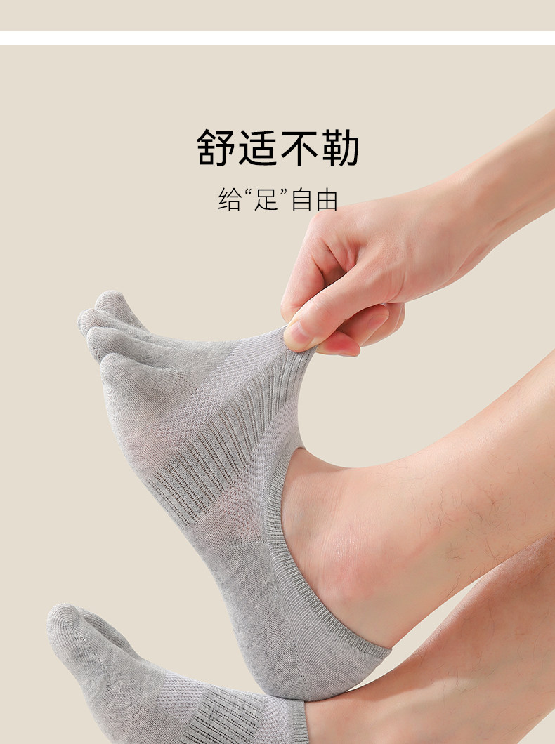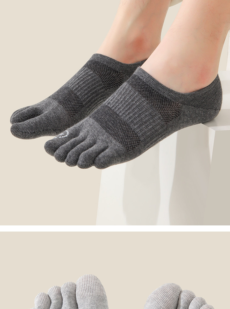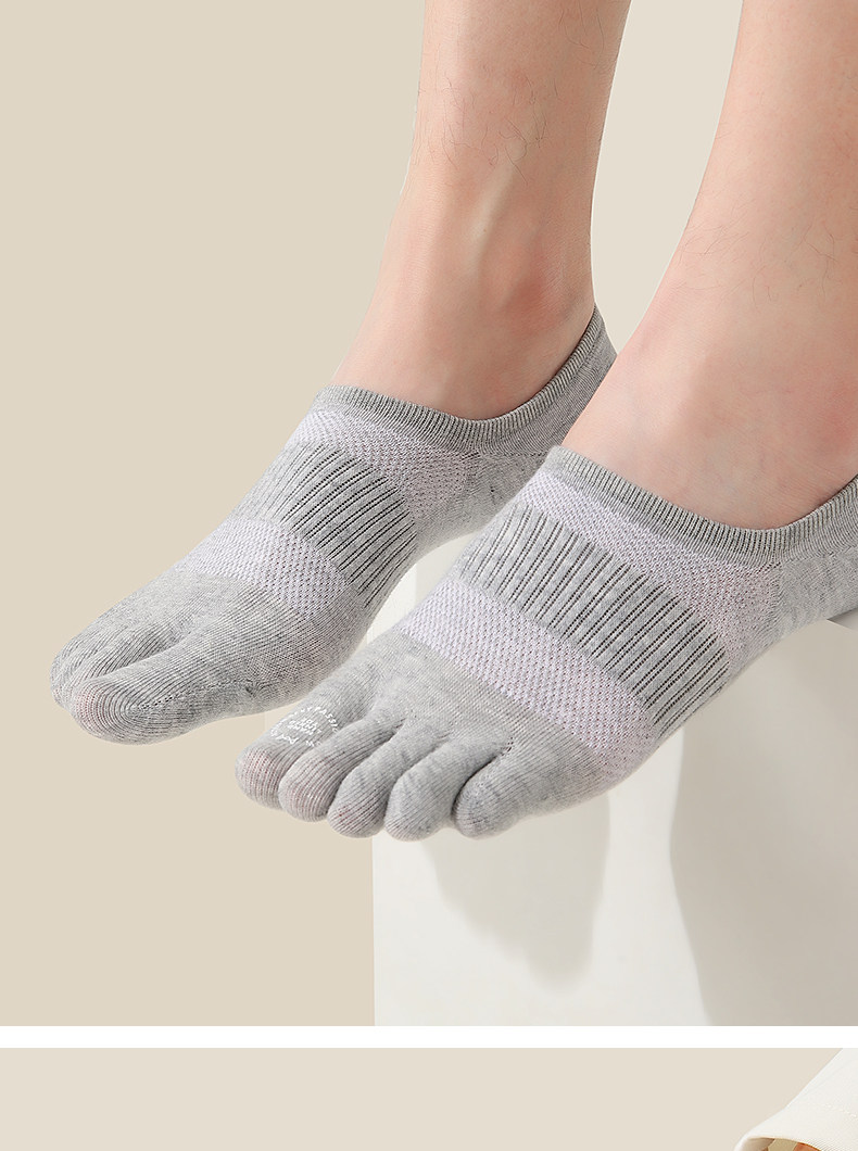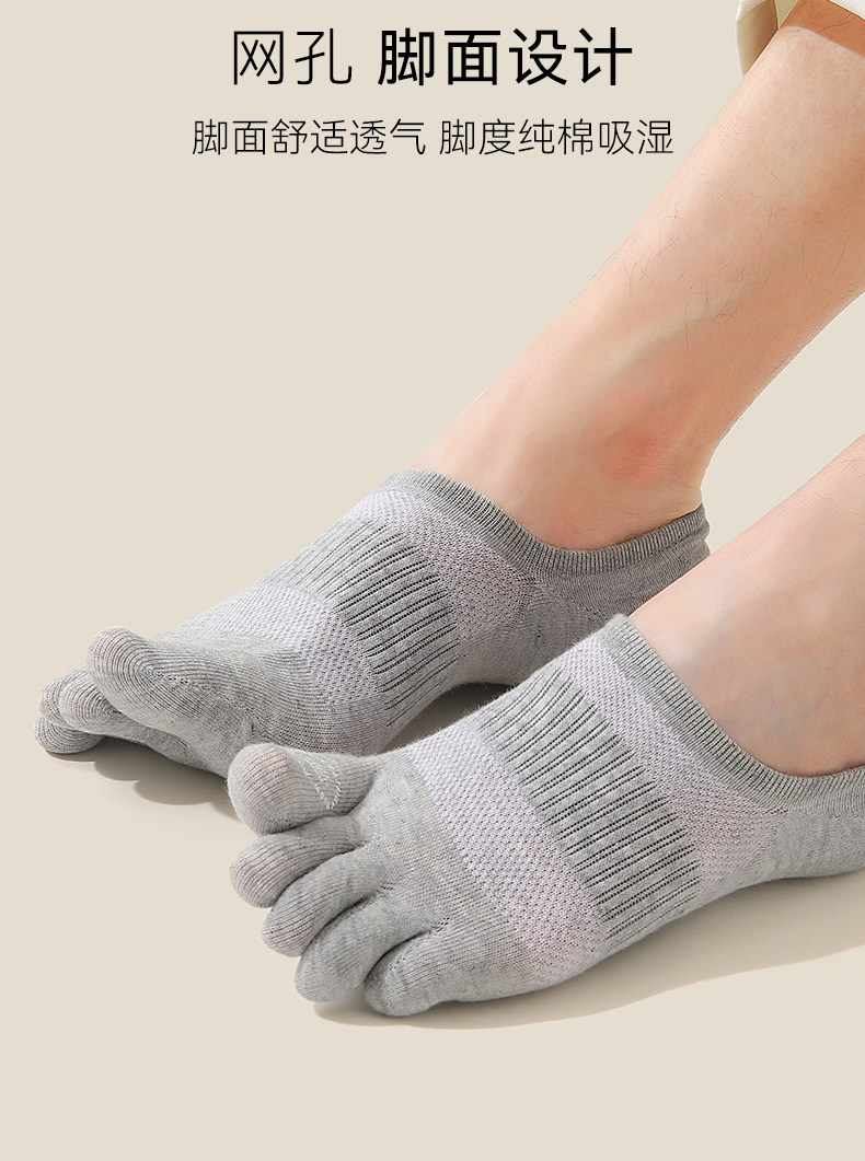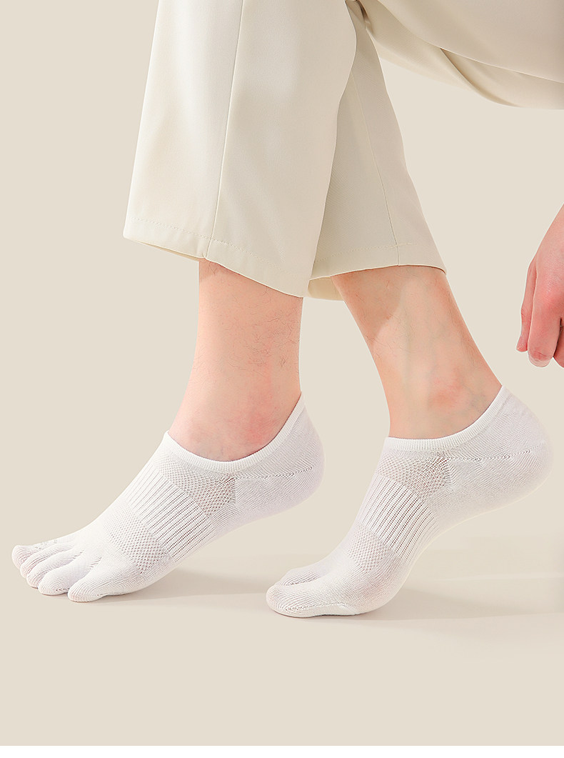 Catman Socks Men's Five-Toe Socks Summer Thin Short Socks Pure Cotton Mesh Boat Socks Breathable Sweat-Absorbing Odor-Resistant Split-Toe Socks