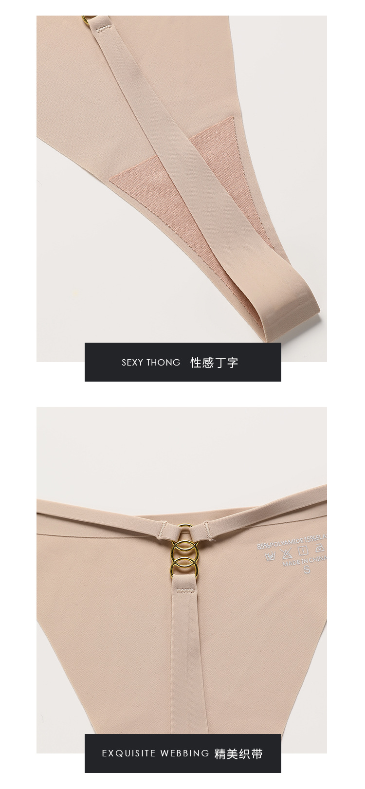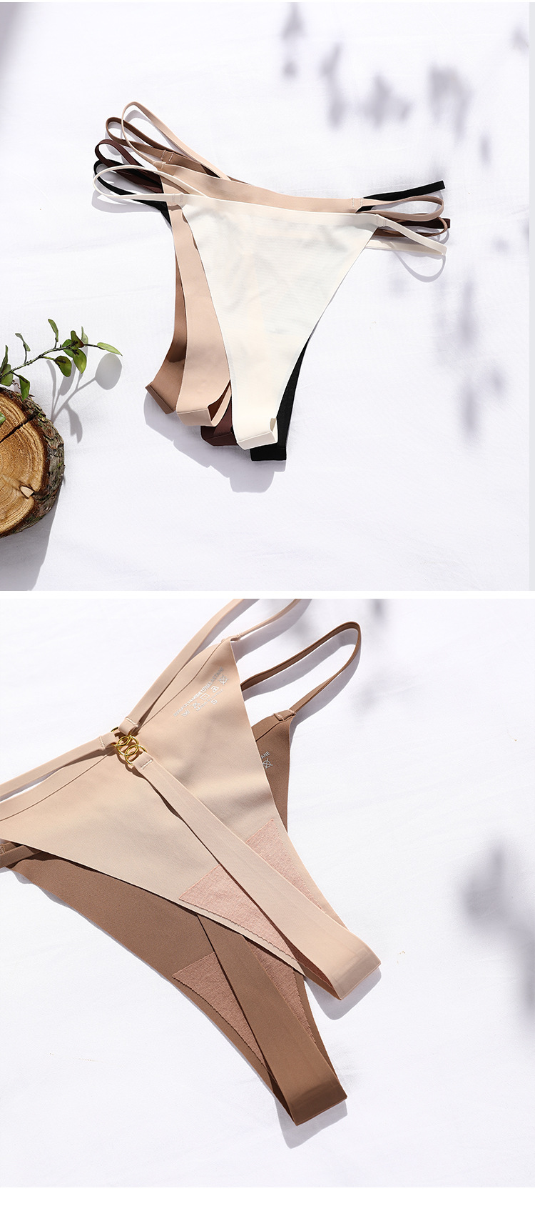 Sexy Women's Seamless Thong Underwear with Thin Straps and Ring Buckle T-Pants for Girls, One-Piece Cotton Crotch Fitness Underwear