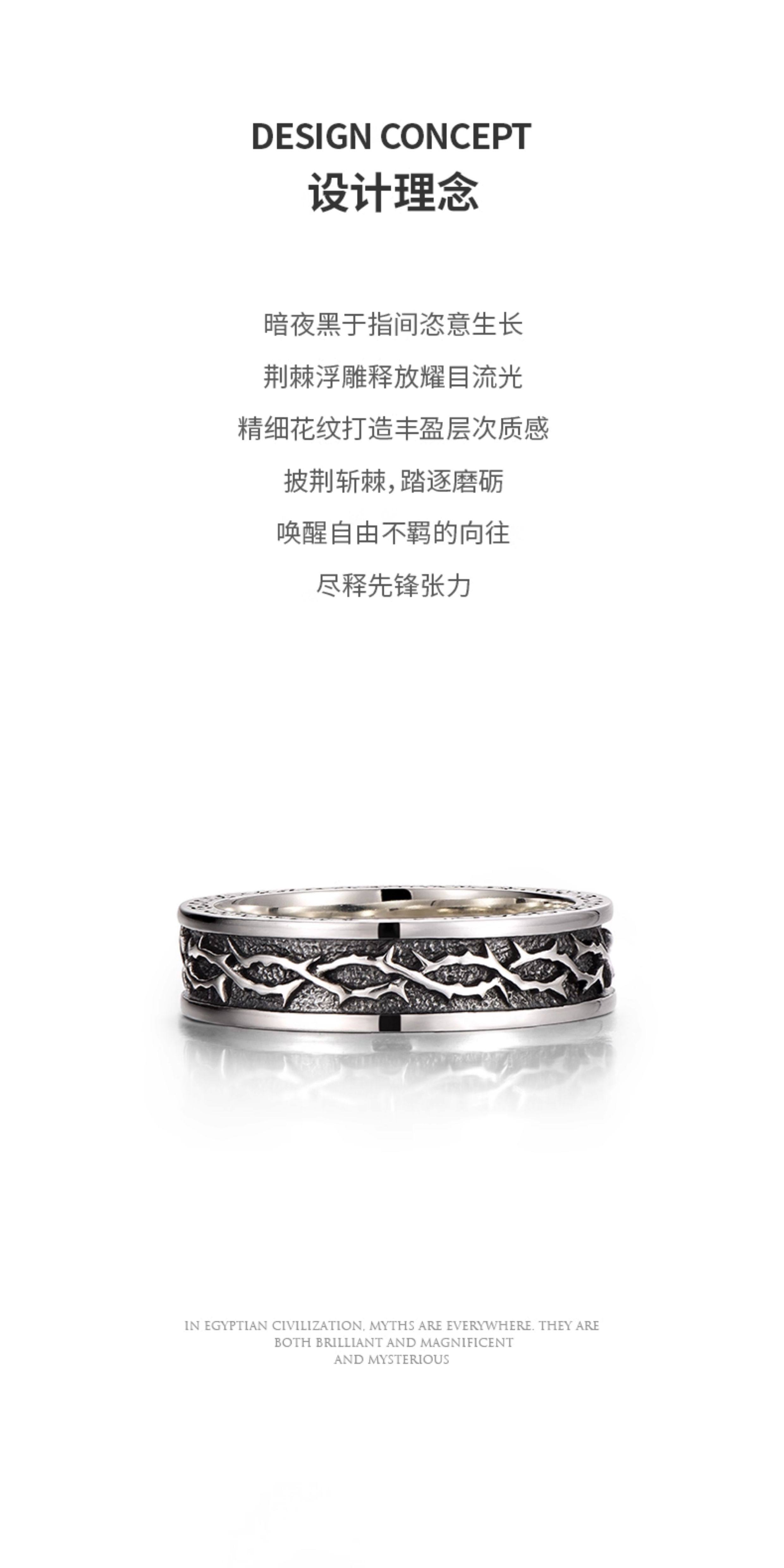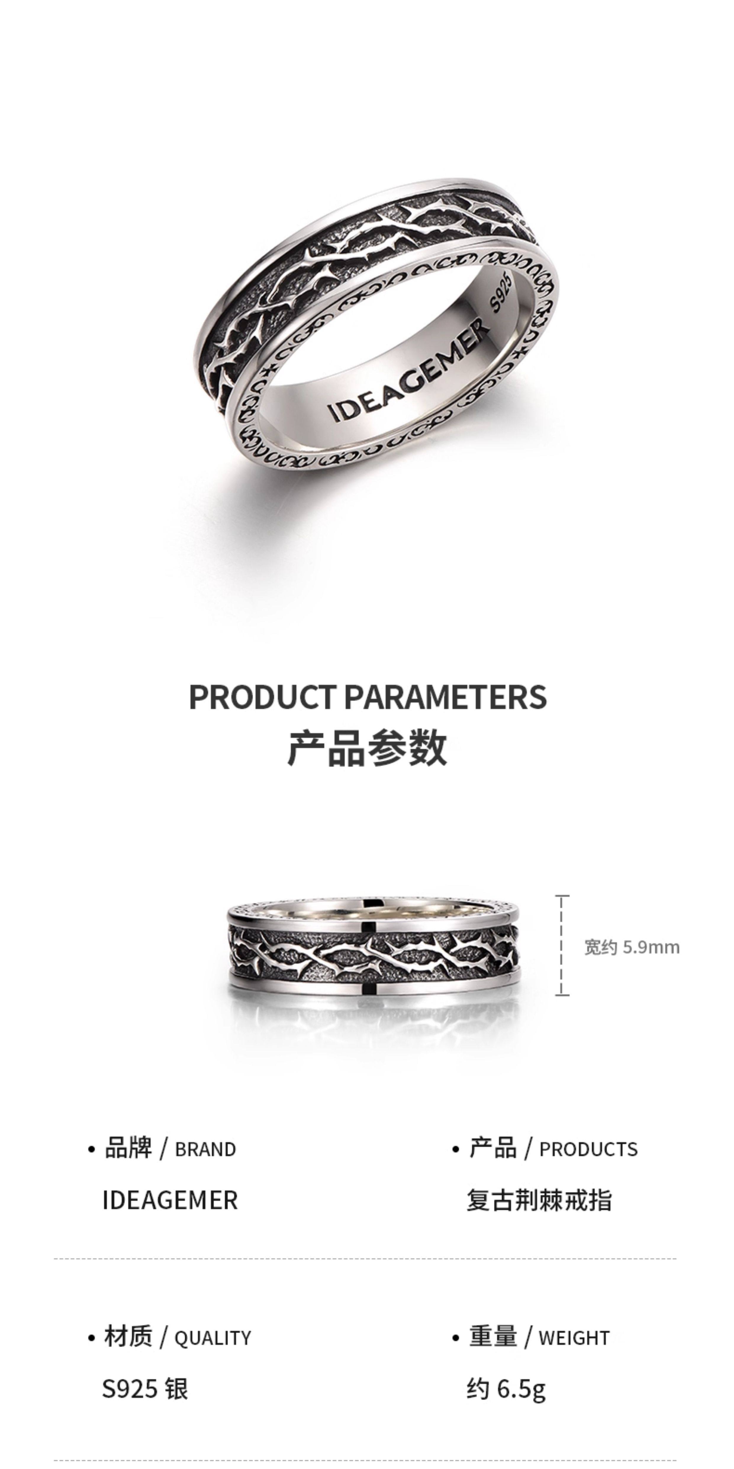 Ideagemer【With Certificate】Sterling Silver Thorn Ring for Men and Women, Niche Design, High-End Birthday Gift