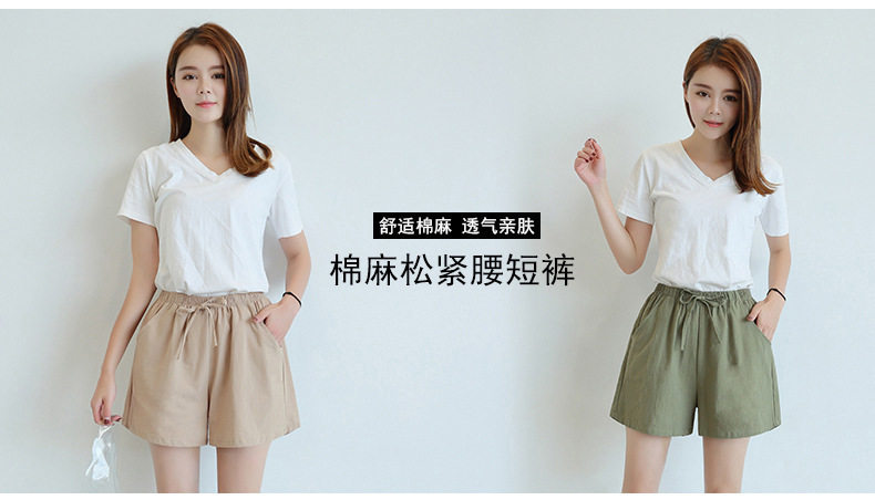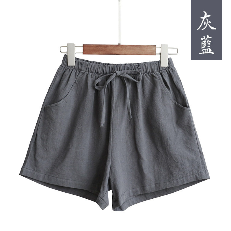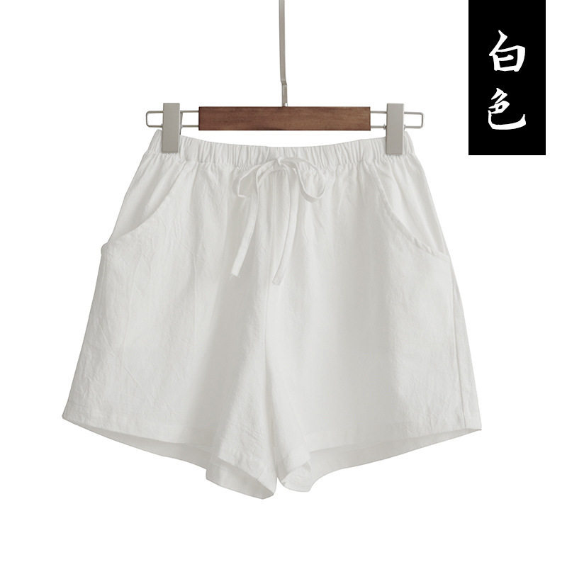 High-Waisted Cotton and Linen Shorts for Women, Summer Elastic Waist, Loose Casual Linen Slimming Korean Style Hot Pants, Plus Size Thin Wide-Leg Pants