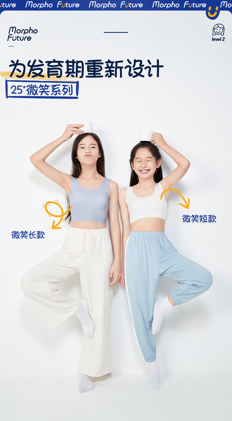 Mofei Future Girl Underwear Development Stage 2, Ages 11-15, Elementary and Middle School Girls, Comfortable Short Style