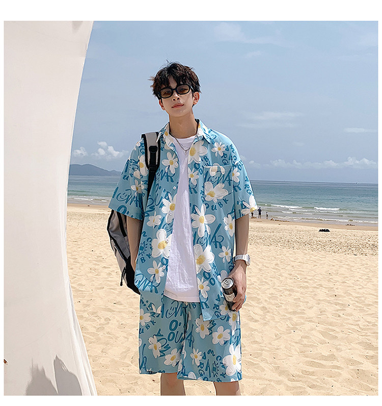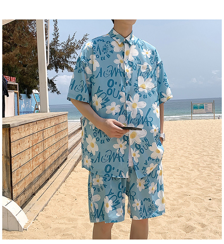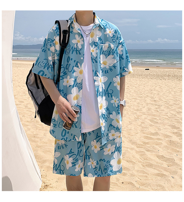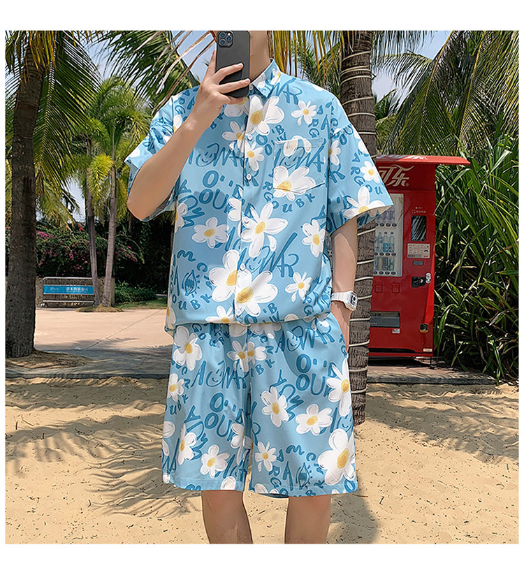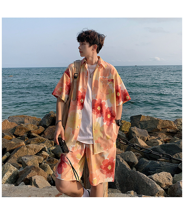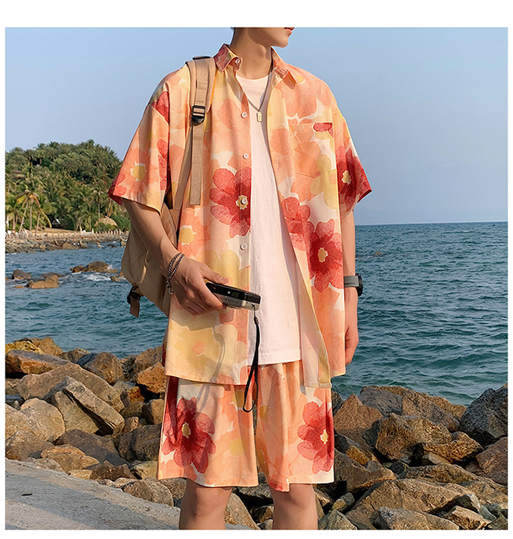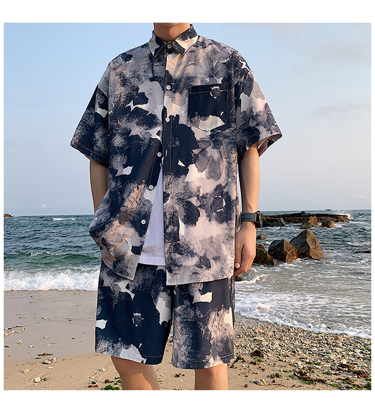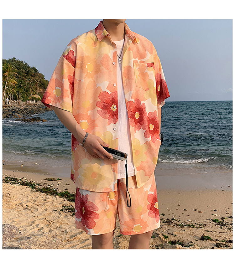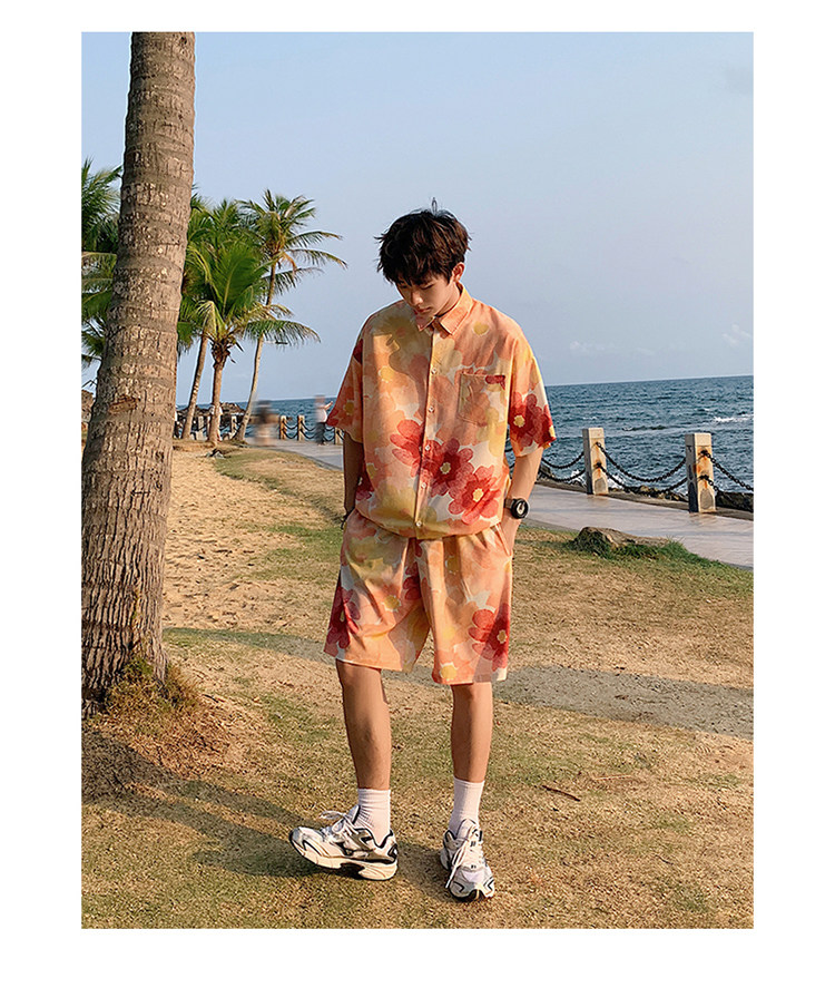 Ice Silk Short-Sleeved Floral Shirt for Men, Summer Thin Loose Casual Shirt, Beach Wear, Beach Shorts, Quick-Drying Suit