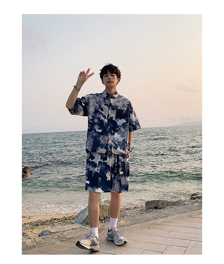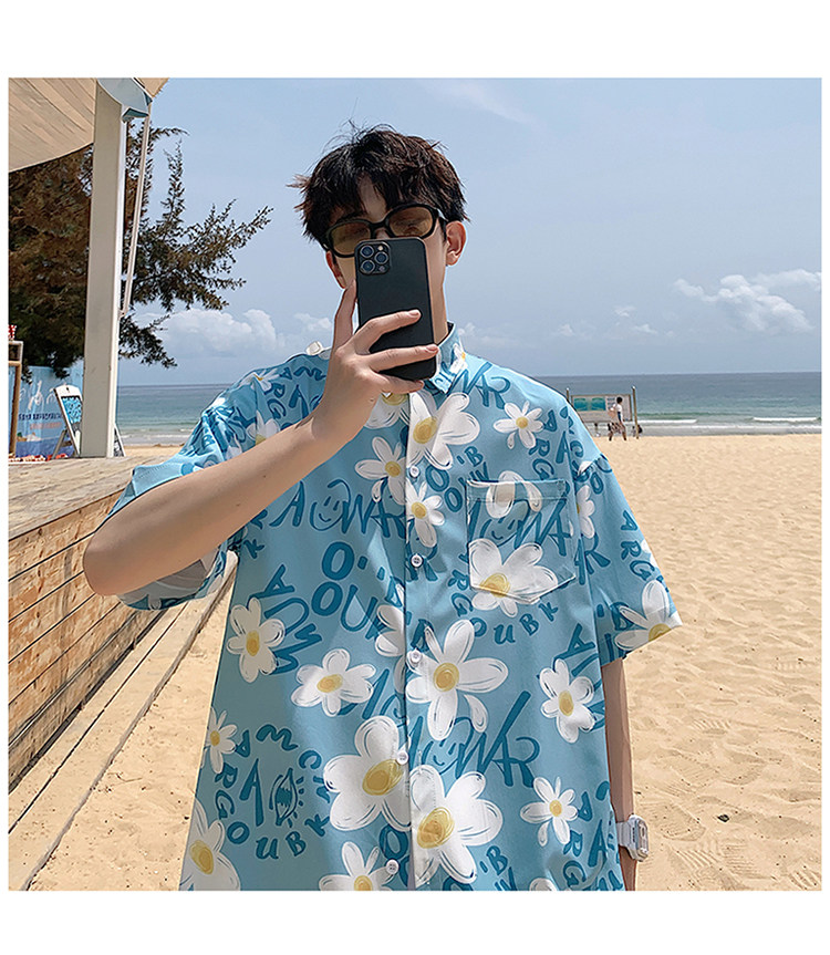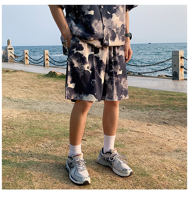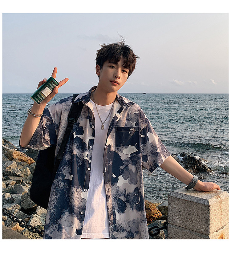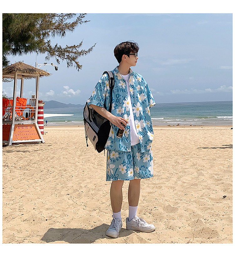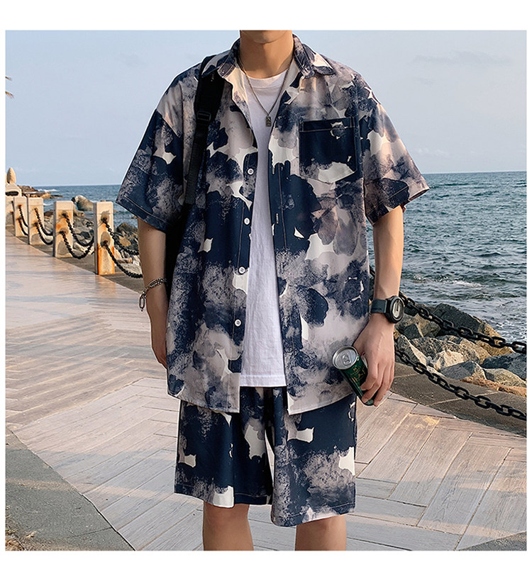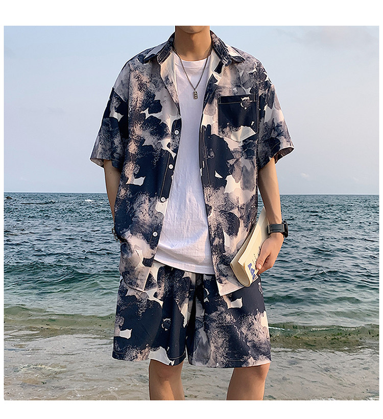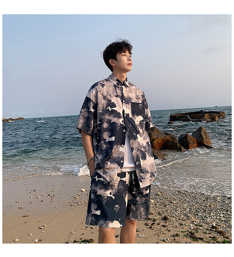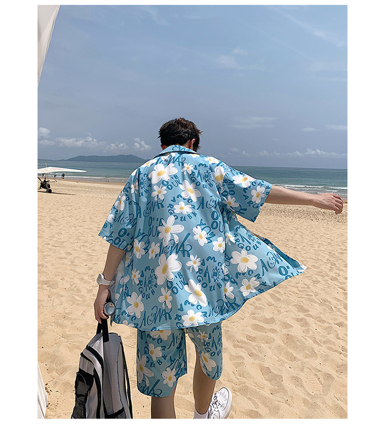 Ice Silk Short-Sleeved Floral Shirt for Men, Summer Thin Loose Casual Shirt, Beach Wear, Beach Shorts, Quick-Drying Suit