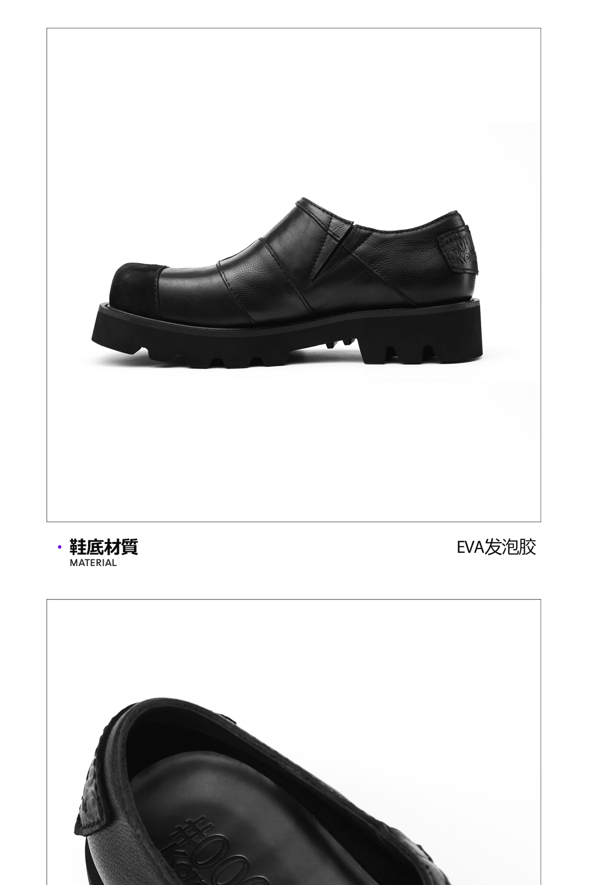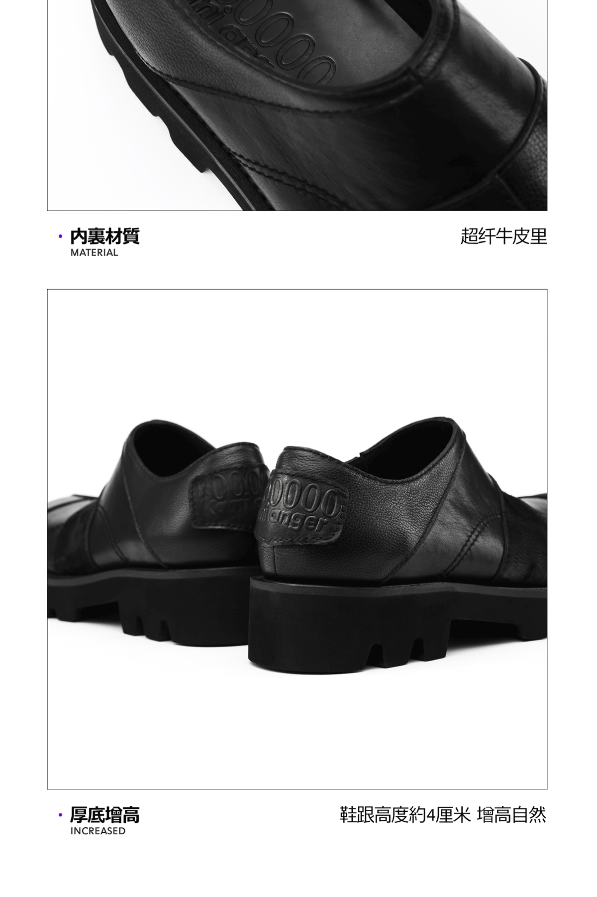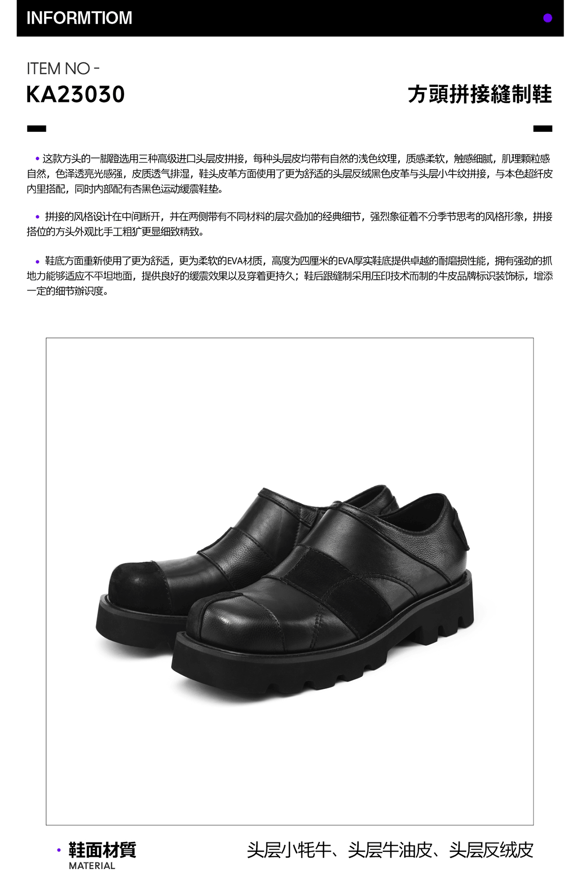 Kami Anger Original Design Square-Toe Patchwork Stitched Shoes Height-Increasing Casual Leather Shoes for Men New Slip-On Style