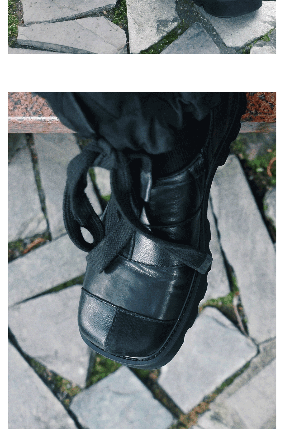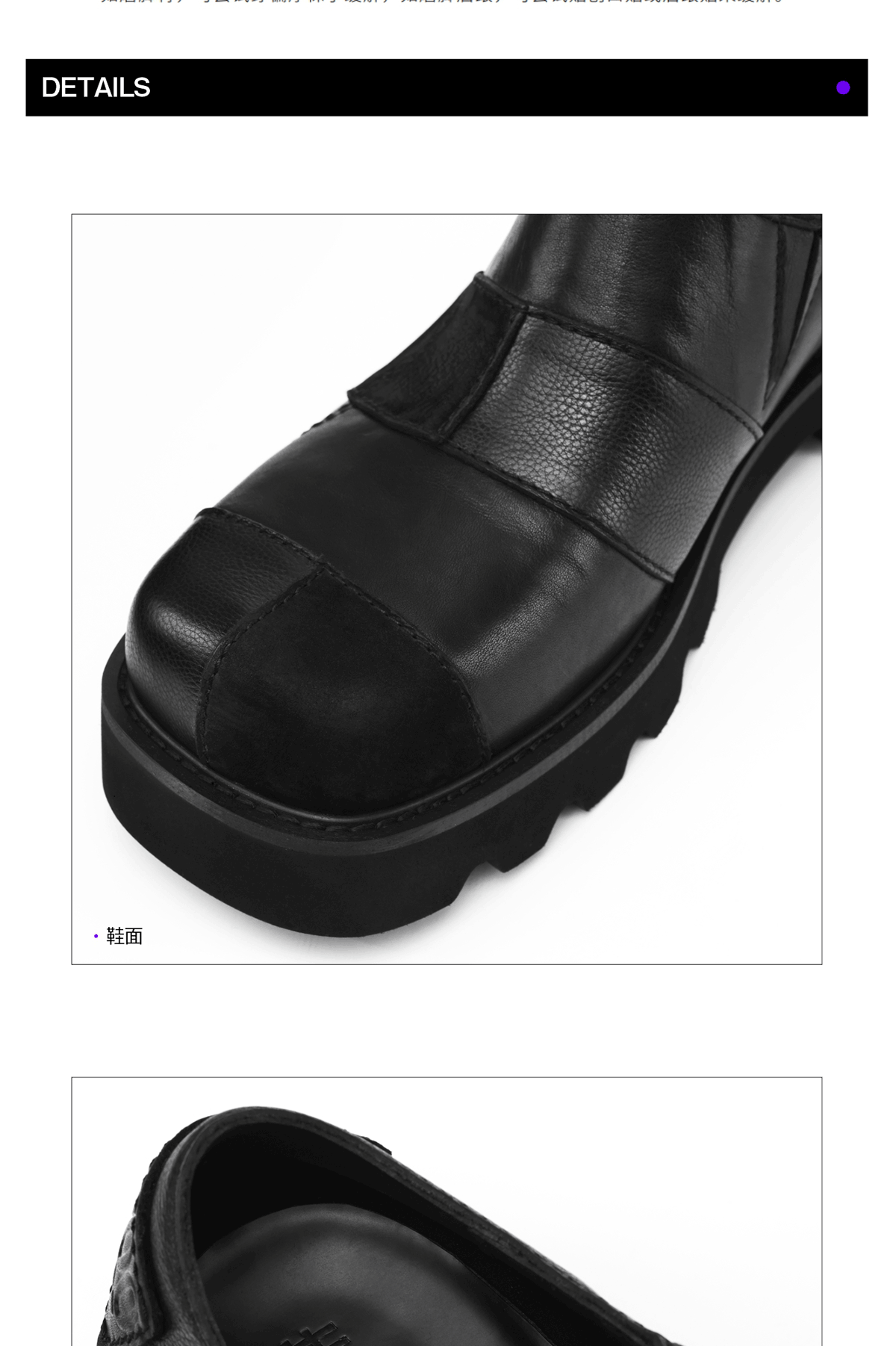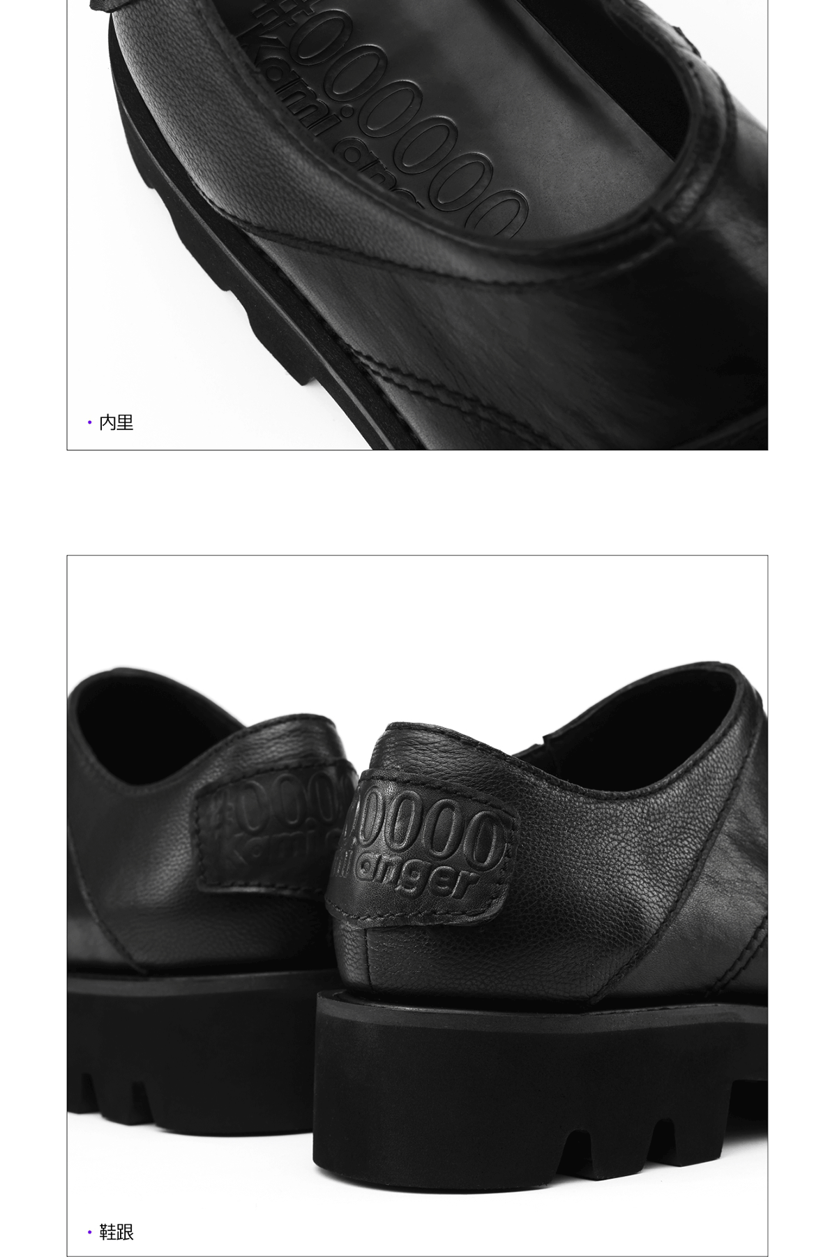 Kami Anger Original Design Square-Toe Patchwork Stitched Shoes Height-Increasing Casual Leather Shoes for Men New Slip-On Style