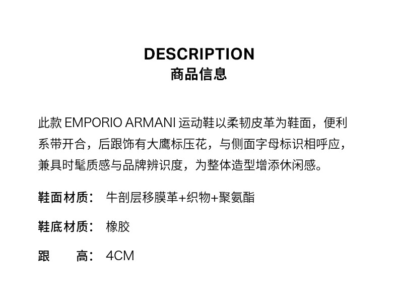 [New Year Gift] Emporio Armani/Armani Spring and Summer Men's Lace-Up Thick-Soled Sports Casual Shoes