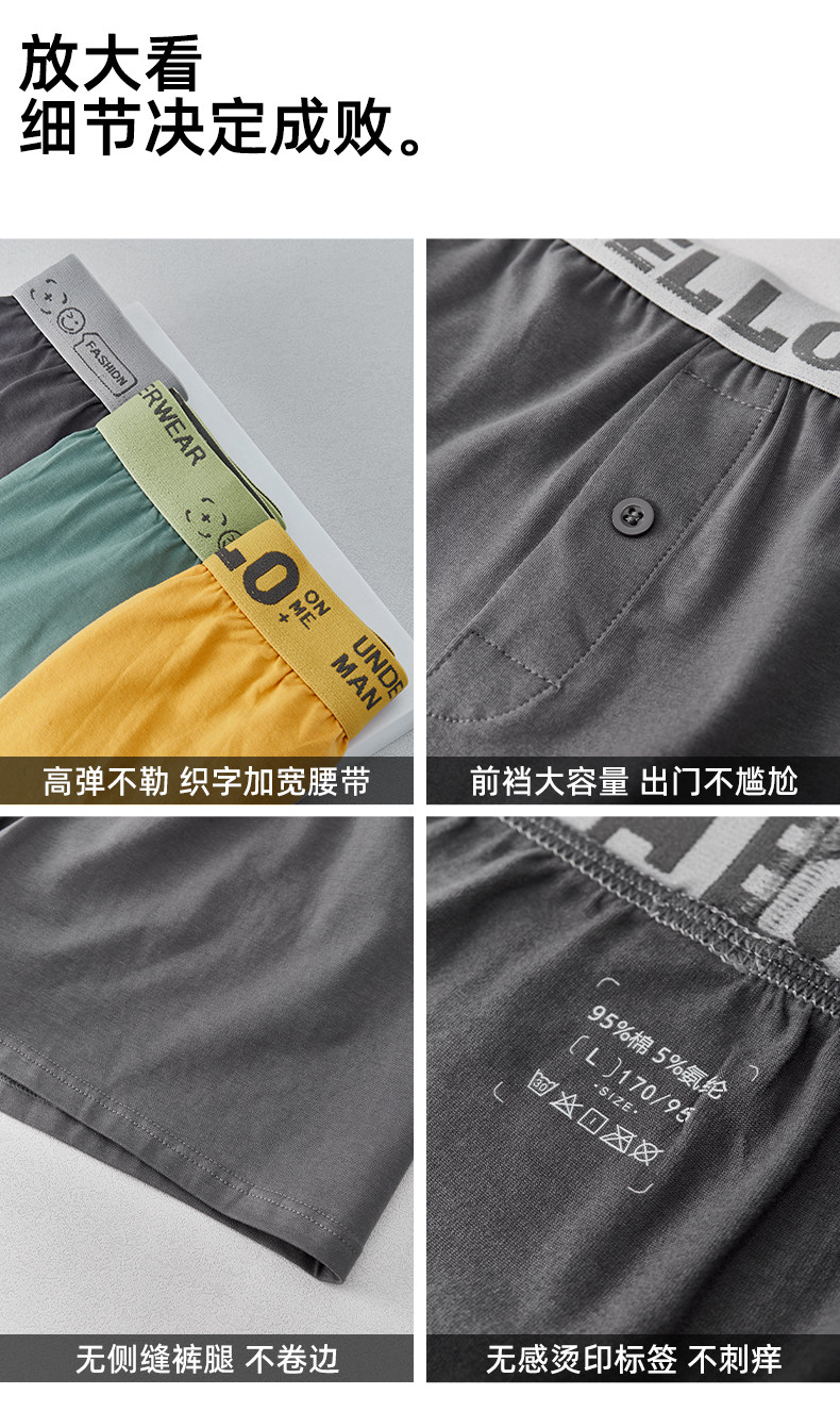 Zoyin 3-Pack Men's Cotton Boxer Briefs, Men's Sports Shorts, Loose-Fitting Home Shorts, Trendy Four-Corner Briefs