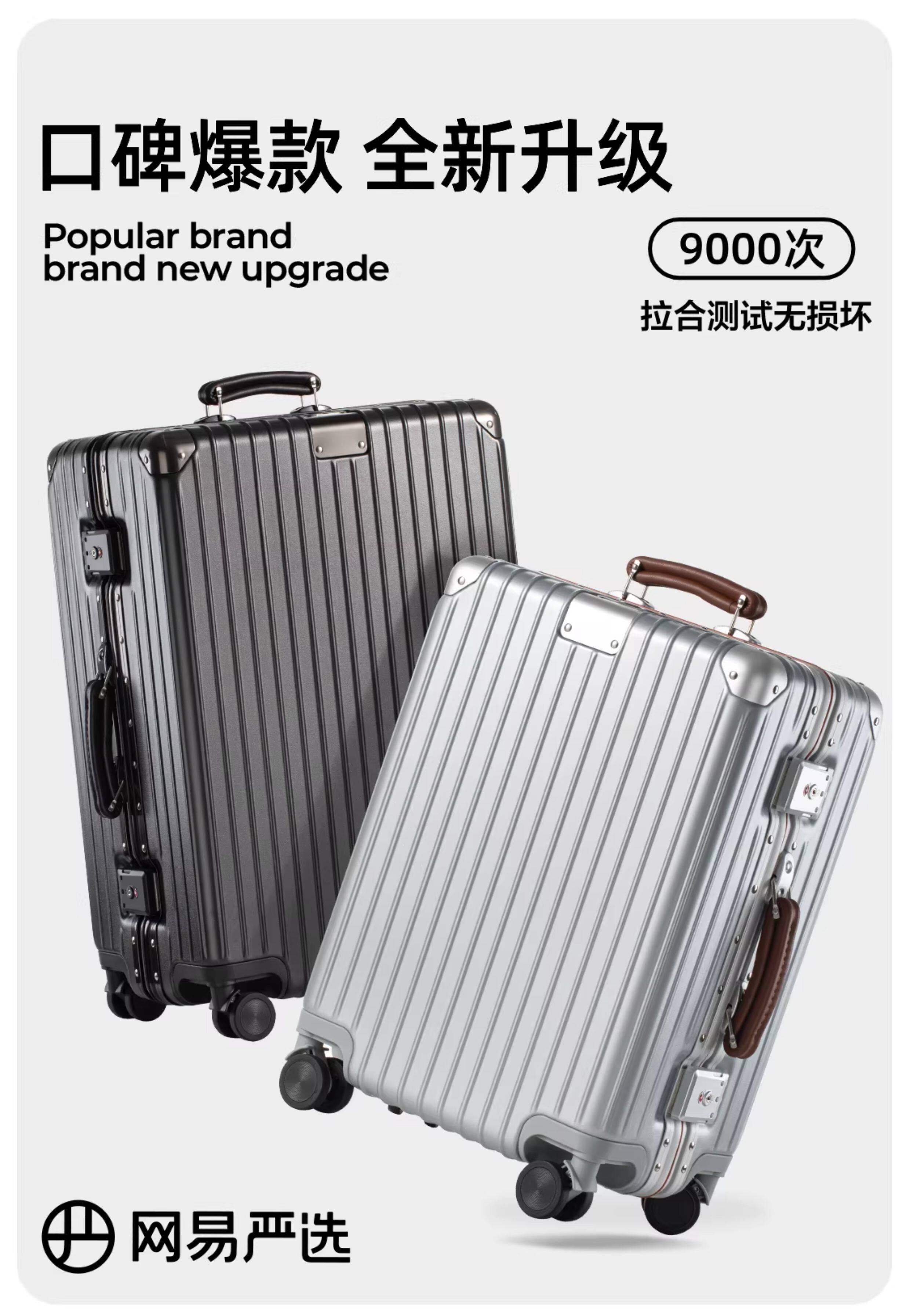 Netease Carefully Selected Aluminum Frame Trolley Suitcase for Men, 24inch Large Capacity Carry-On Travel Suitcase with Combination Lock, Leather Suitcase for Women, 20inch Luggage Suitcase