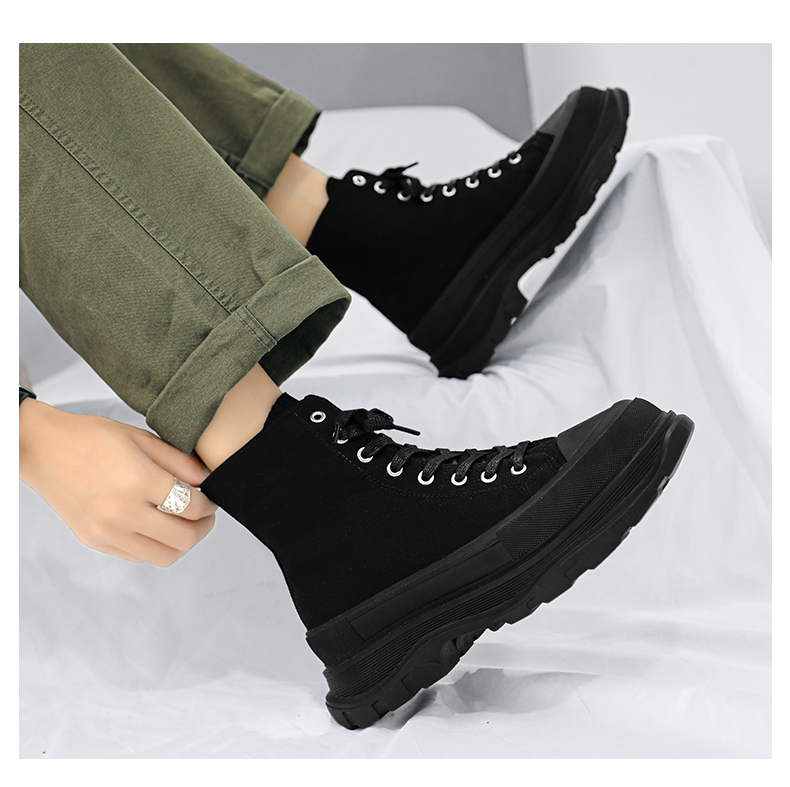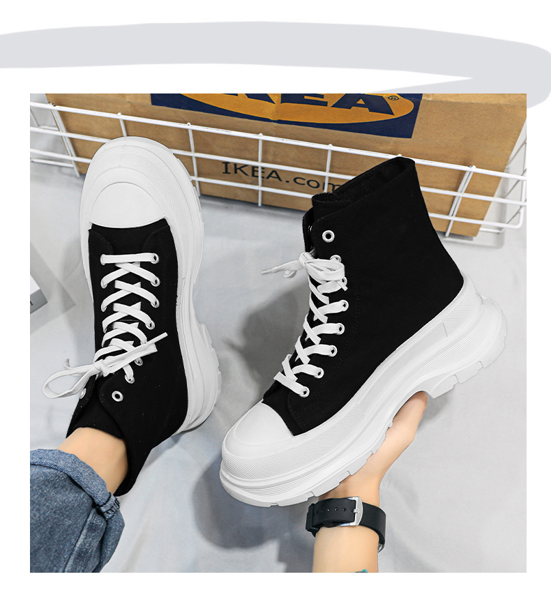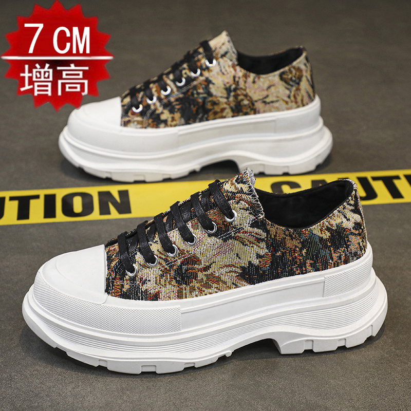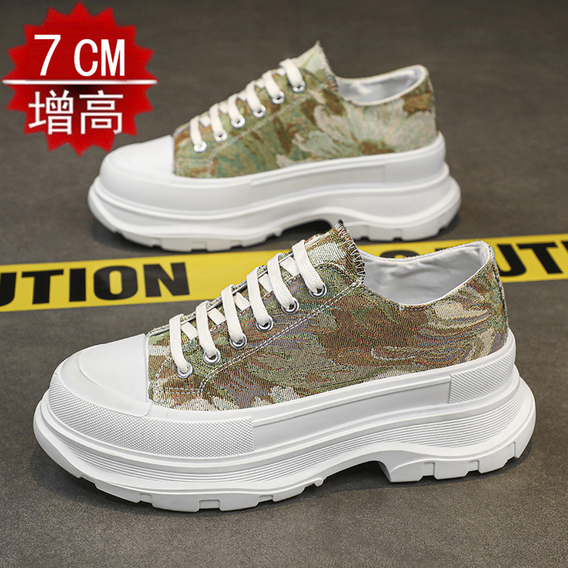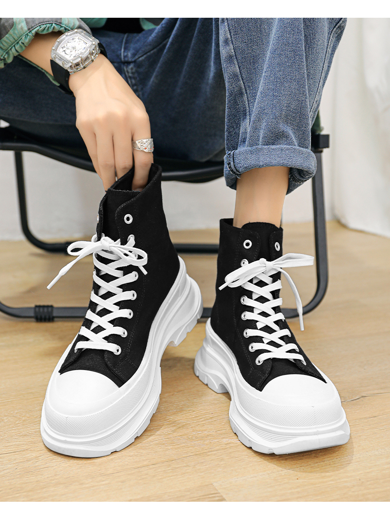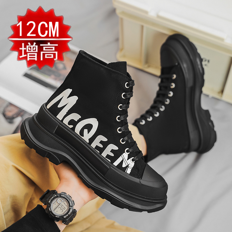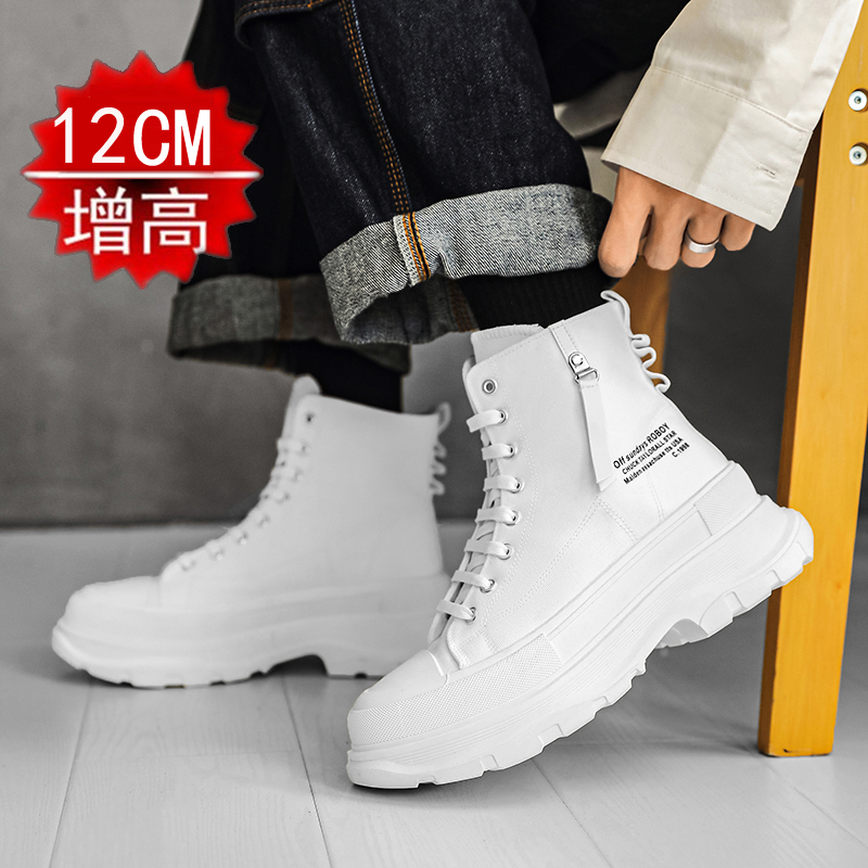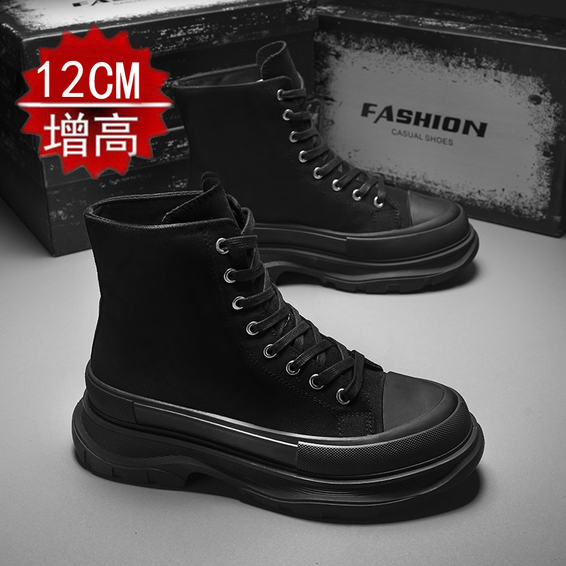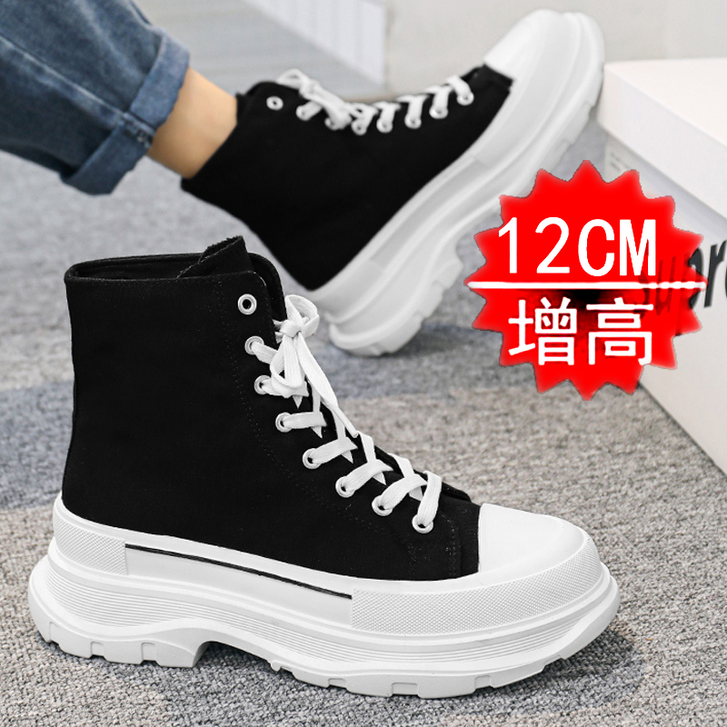 Cos Character Invisible Height-Increasing Shoes for Men, 12Cm/10Cm Canvas Shoes, Versatile Platform Thick-Soled High-Top Dad Shoes