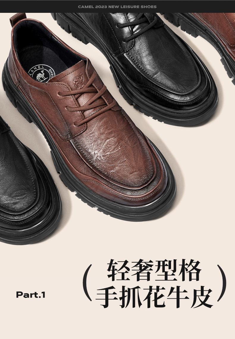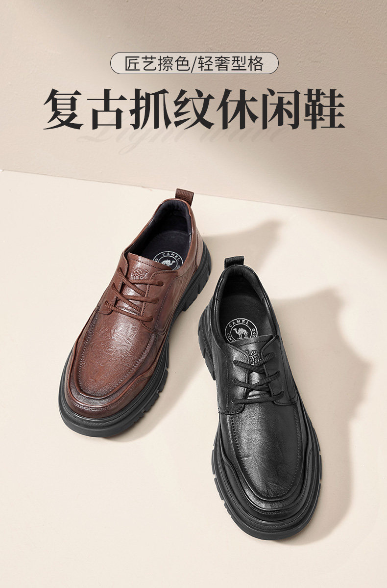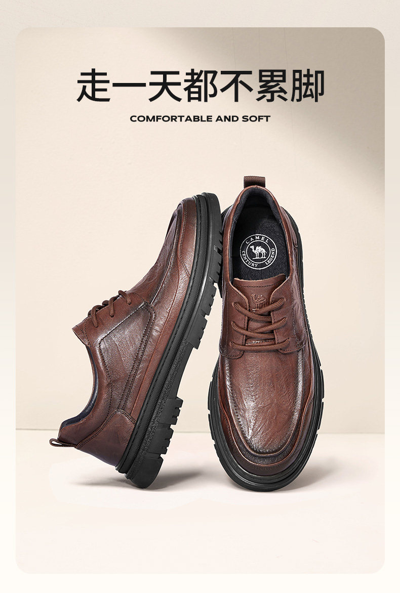 Camel Men's Shoes 2026 Spring Comfortable Commuting Young Genuine Leather Soft Sole British Casual Business Leather Shoes for Men Dad