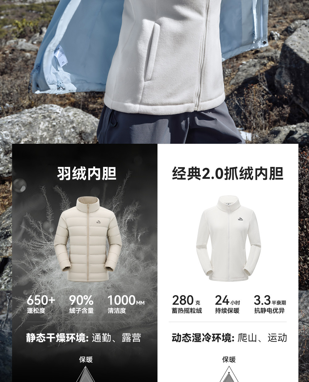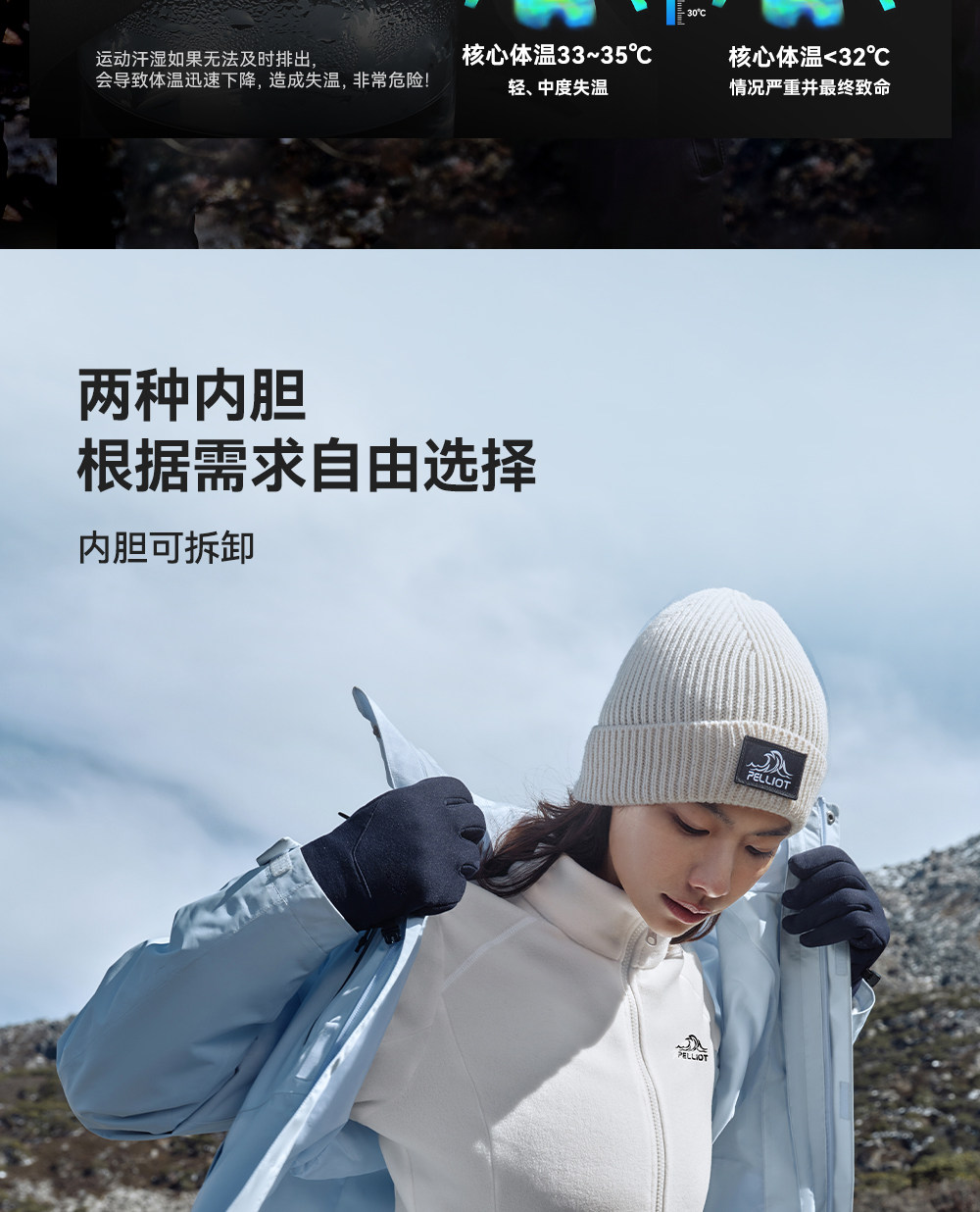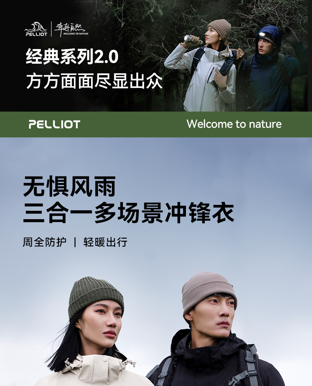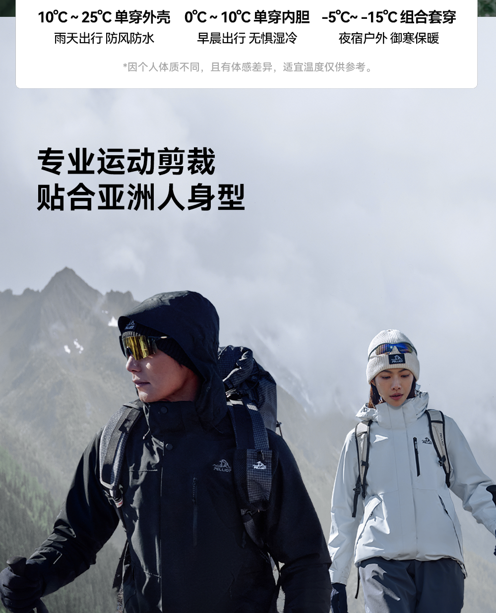 [Classic 2.0] Pelliot Mountain Jacket Women's 3-in-1 Goose down Jacket Outdoor Waterproof Jacket for Men