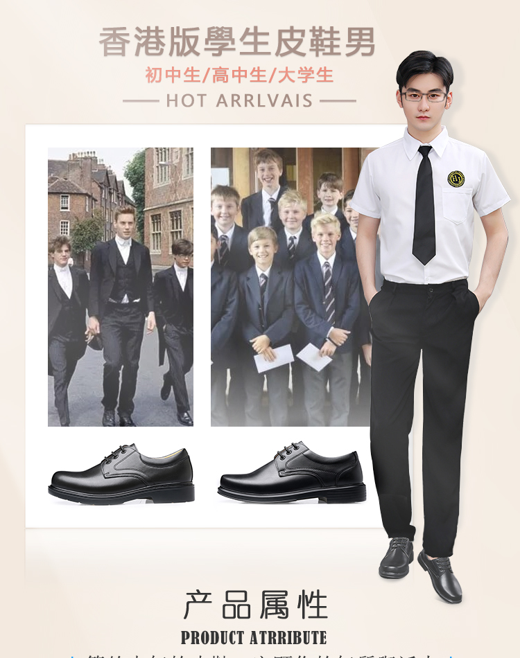 Junior High School Students, High School Students, Leather Shoes, Teenagers, Genuine Leather, British Style, Black, Large Size, Lace-Up, Widened Formal Leather Shoes for Men