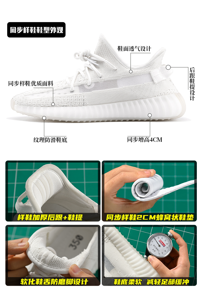 Guangyazi Shoes 350 Pure White Ice Cream Ice Blue Summer Breathable Putian Genuine Official Website Men's Shoes Women's Sports Running Shoes