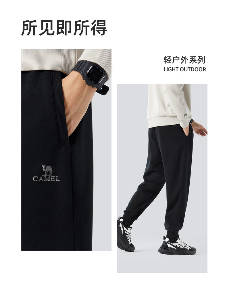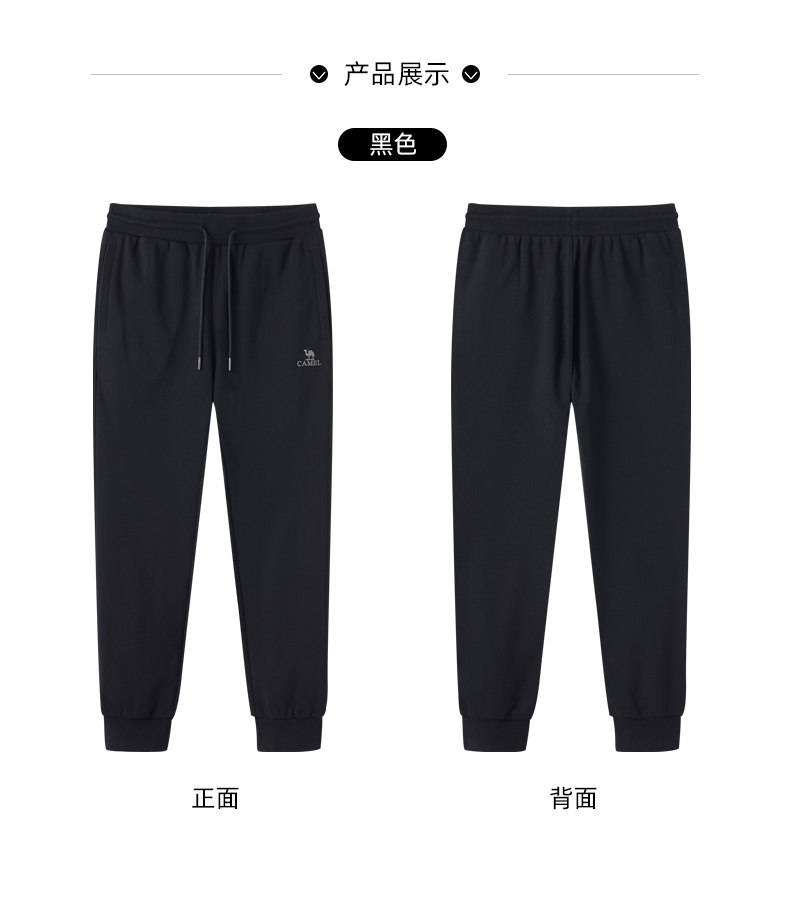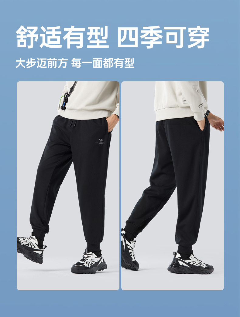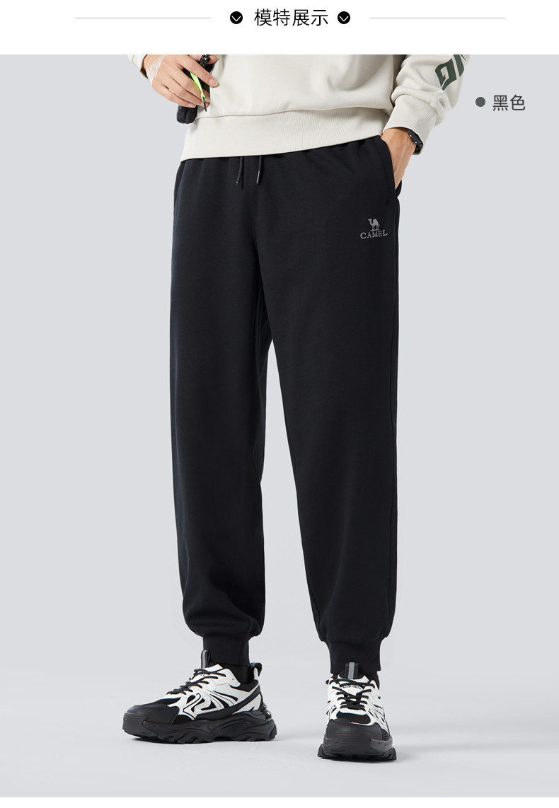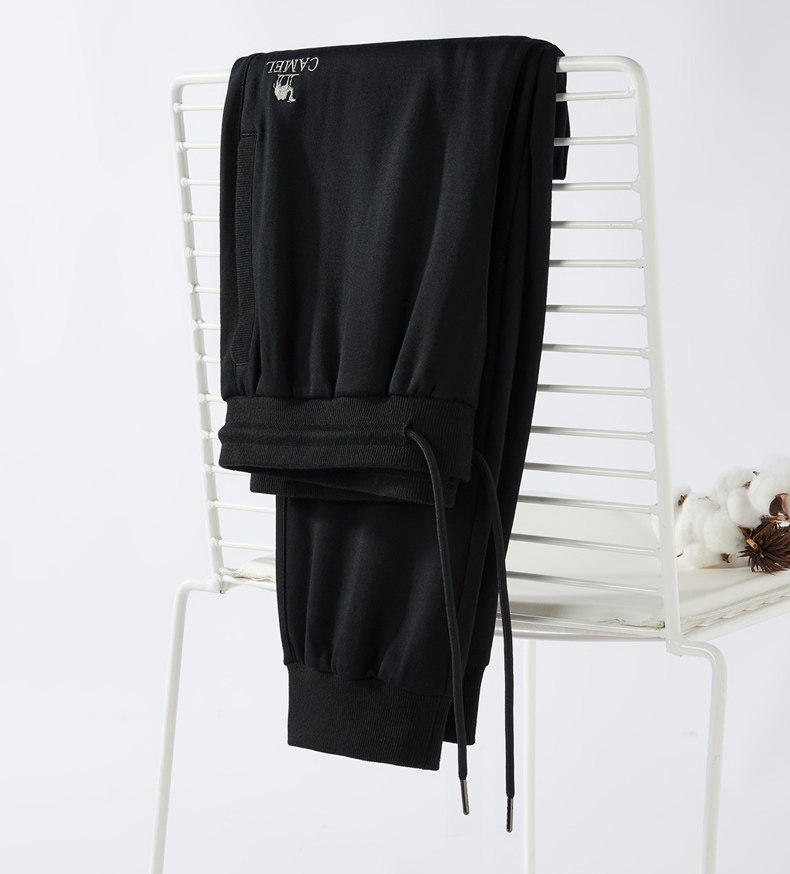 Camel Men's Sports Pants, Men's Autumn and Winter Pure Cotton Knitted Fleece-Lined Sweatpants, Black Loose-Fitting Jogger Casual Long Pants