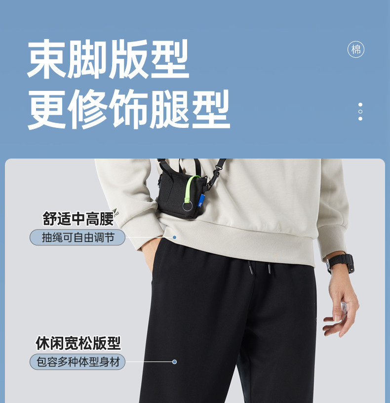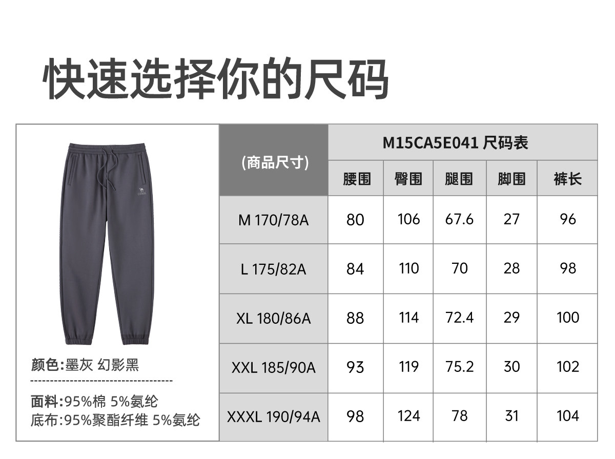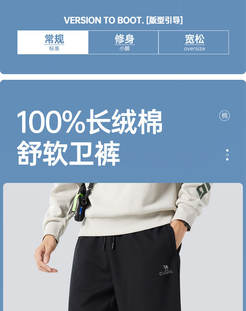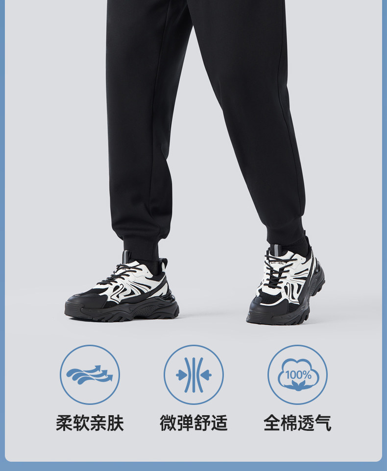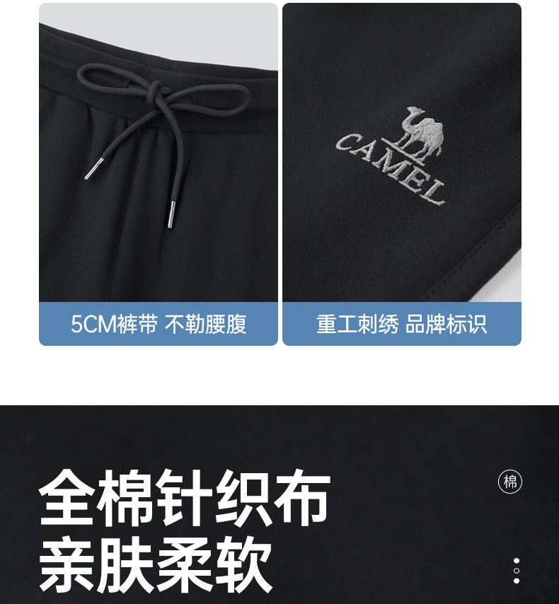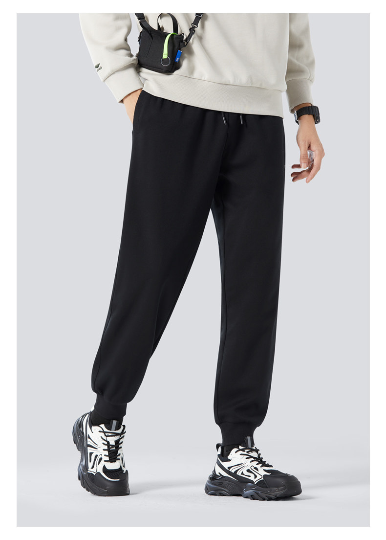 Camel Men's Sports Pants, Men's Autumn and Winter Pure Cotton Knitted Fleece-Lined Sweatpants, Black Loose-Fitting Jogger Casual Long Pants