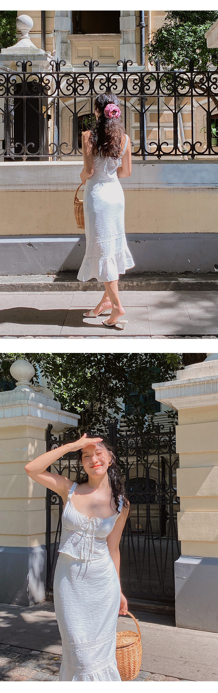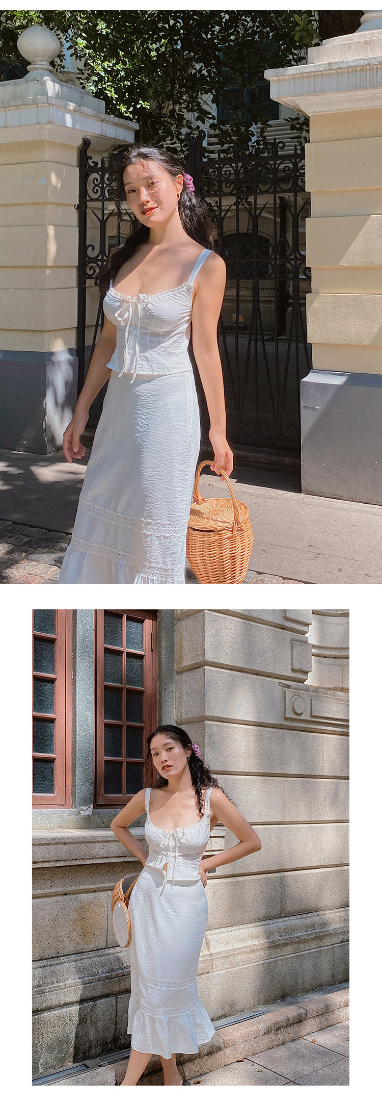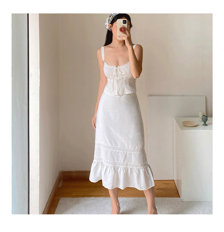 Ooh Itch Itch "Julie Set" White French Lace Camisole A-Line Fishtail Skirt