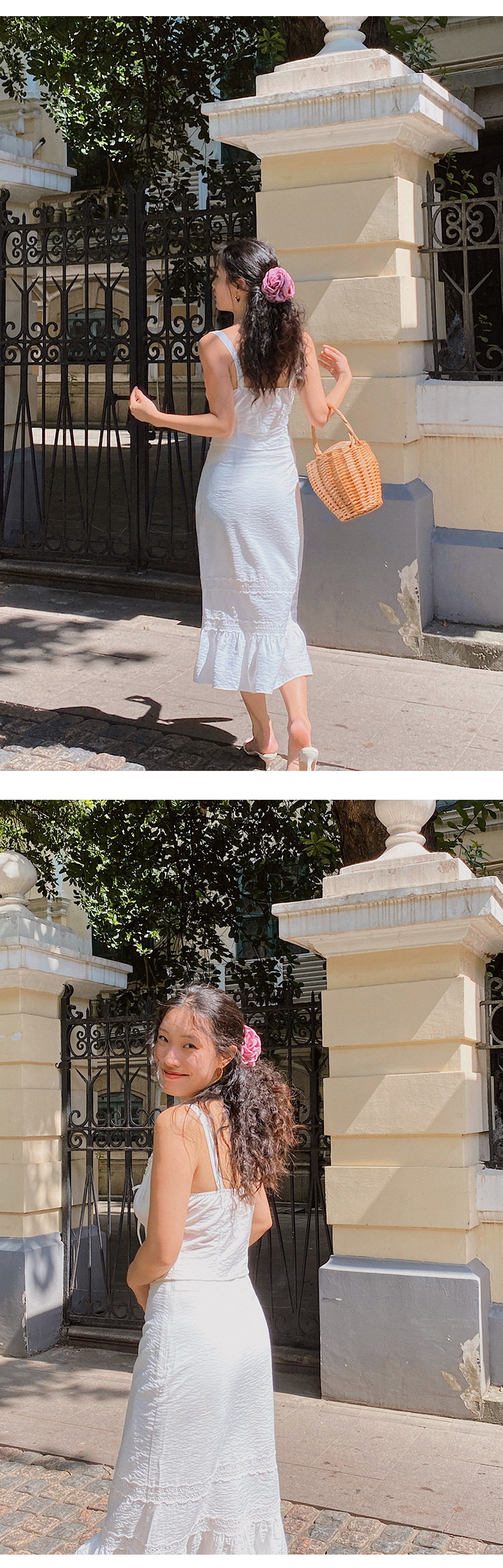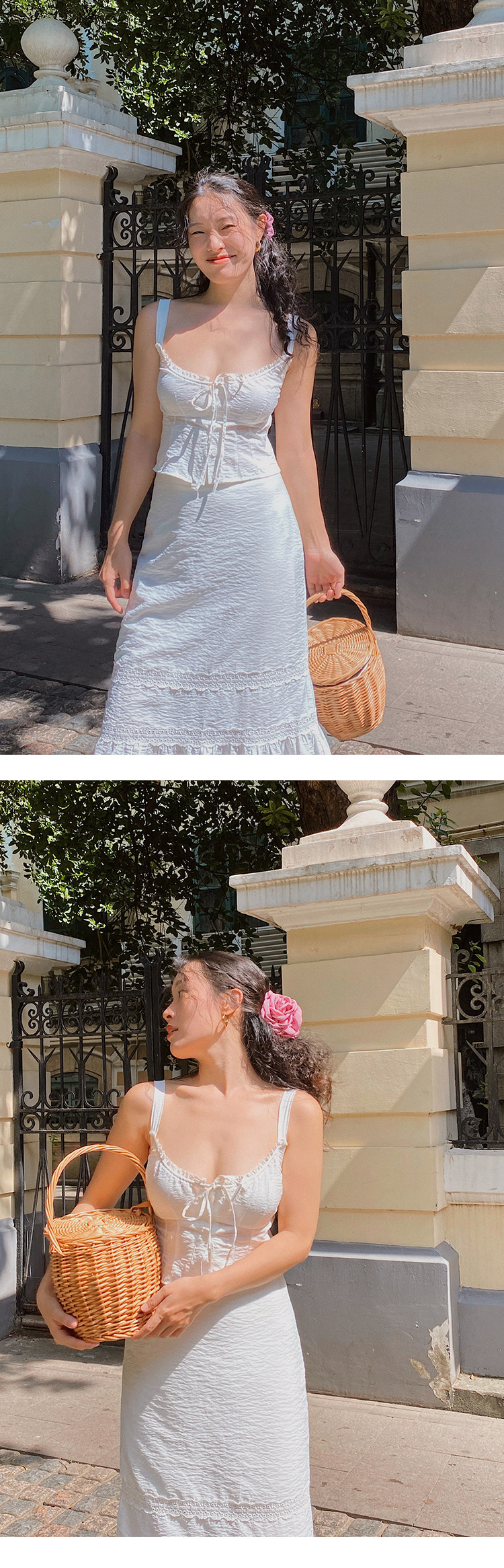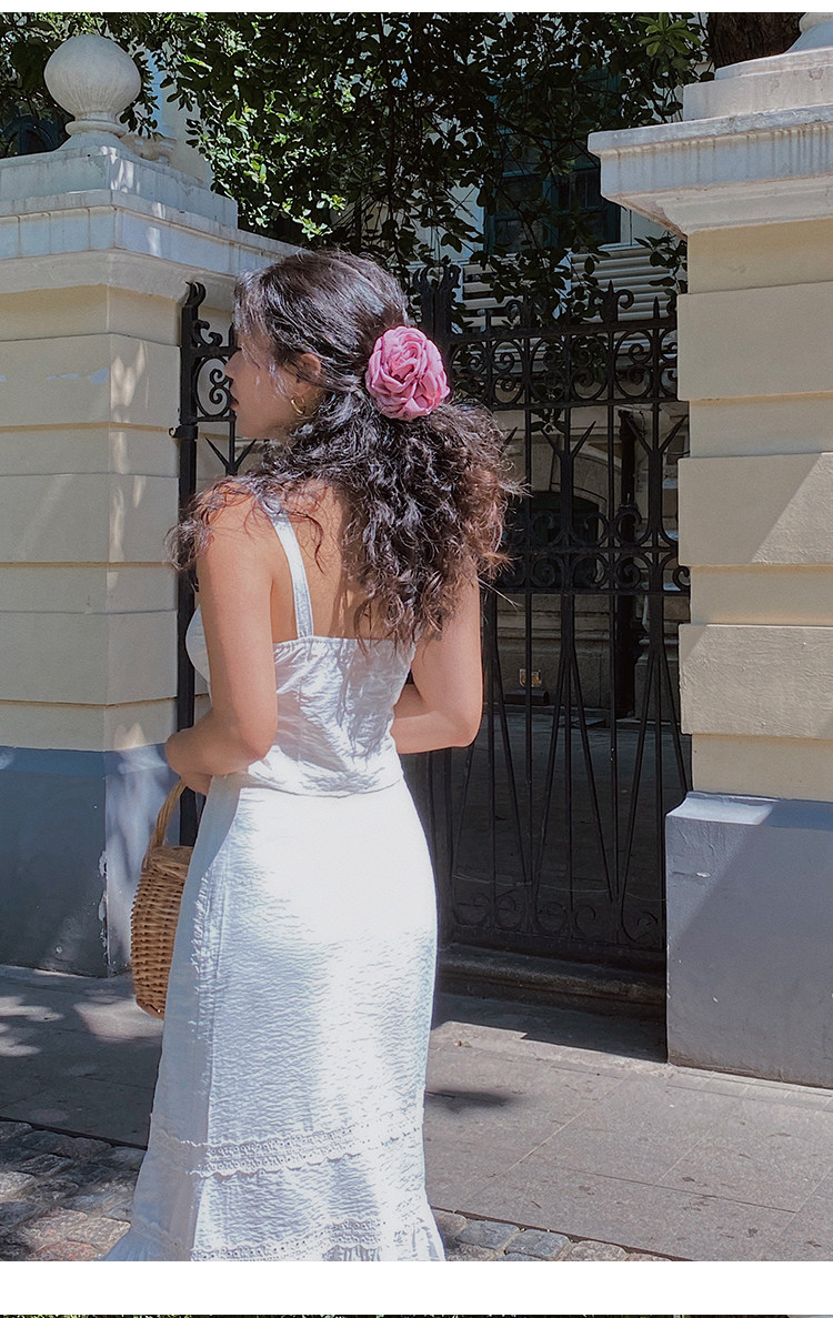 Ooh Itch Itch "Julie Set" White French Lace Camisole A-Line Fishtail Skirt