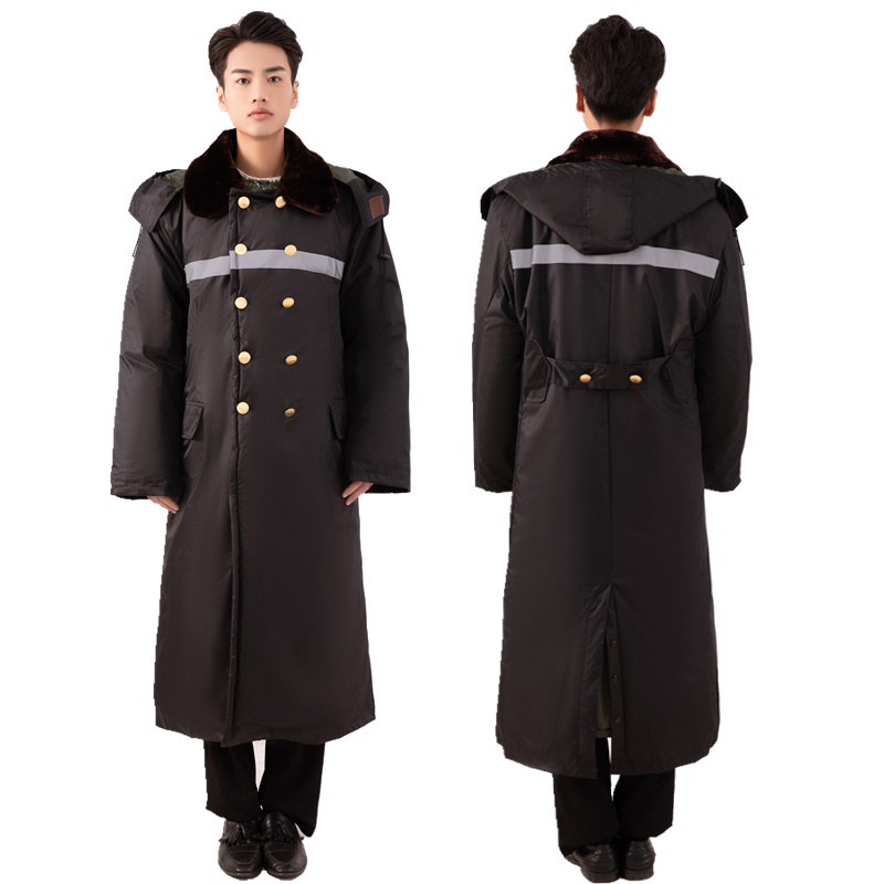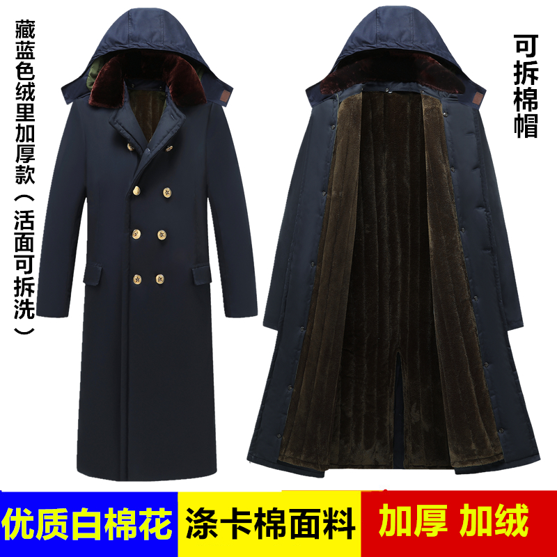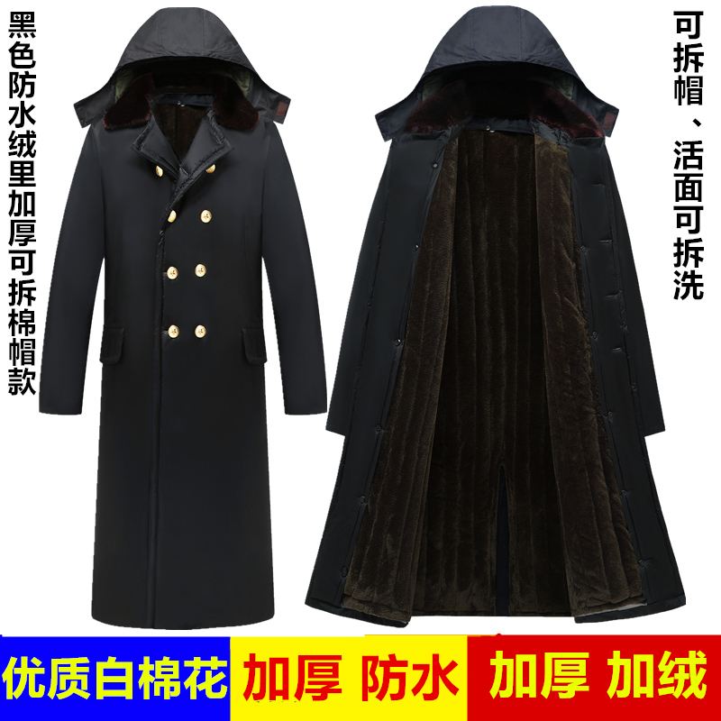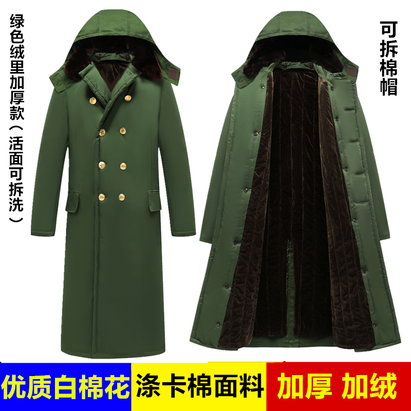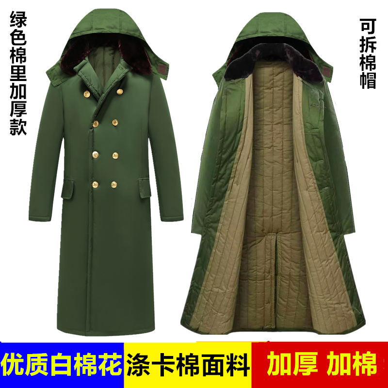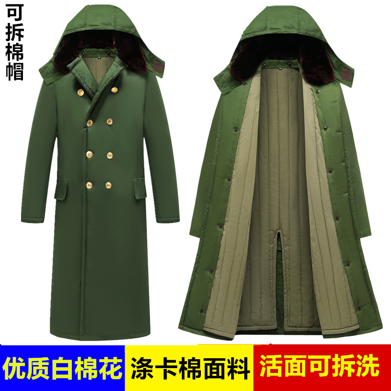 Detachable Cotton Hat Military Green Coat for Men and Women, Winter Thickened Long Style, Labor Protection, Cold Storage Work, Cold-Proof Cotton Clothing