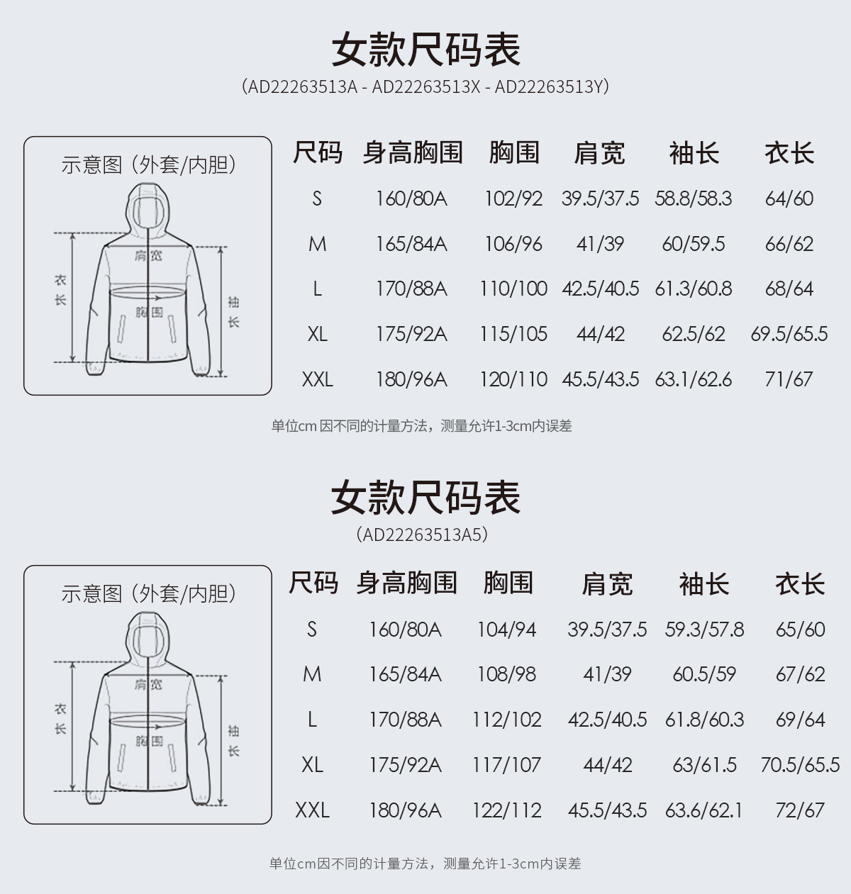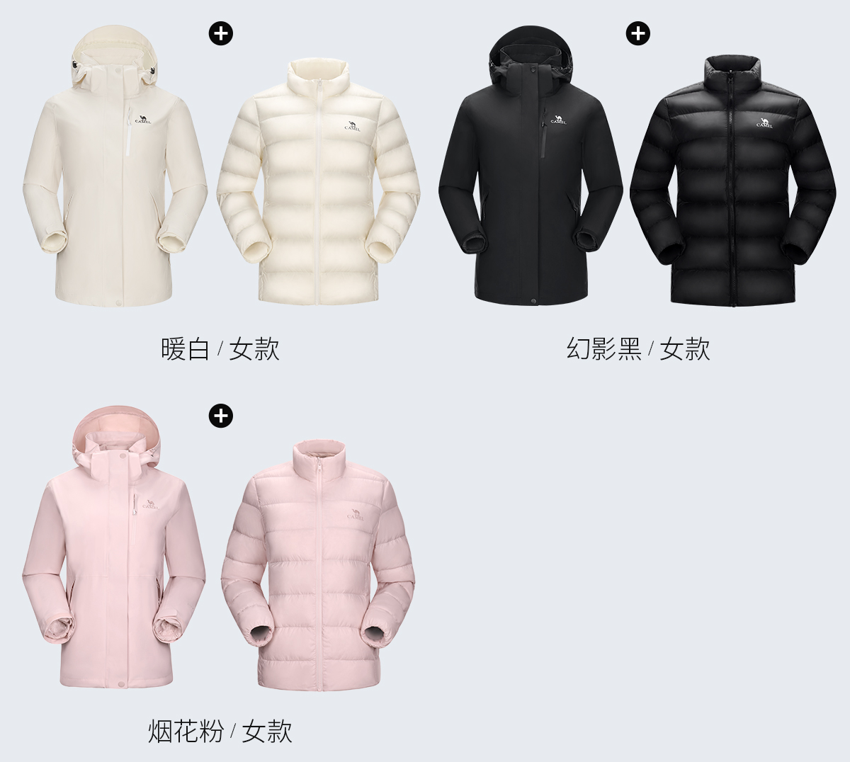 3514系列含有AD12263514X/AD22263513X是情侣款三合一抓绒内胆AD12263514A/AD12263514BAD22263513A/AD12263514Y/AD22263513Y是情侣款三合一羽绒内胆,皆为同款同品质,因批次不同,会出现色差仓库随机发货,介意的骆驼粉们慎拍!祝粉丝们购物愉快~~