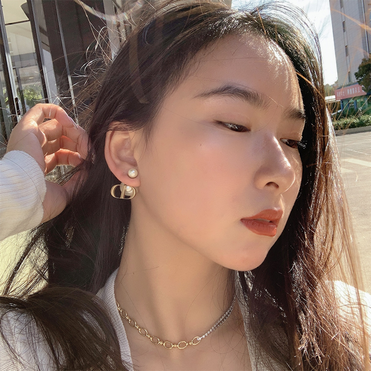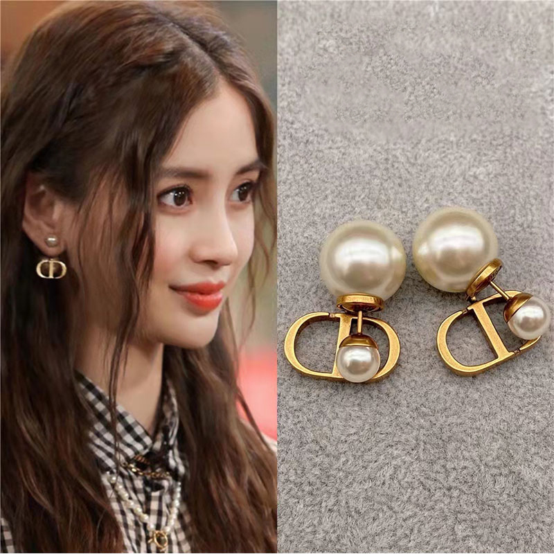 Cd Pearl Earrings Niche Design Sterling Silver Studs High-End Vintage Earrings 2025 New Trendy Earrings for Women