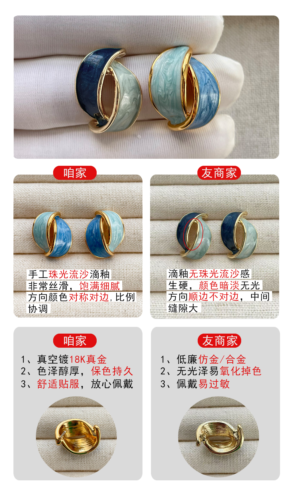French-Style High-End Earrings for Women, Vintage Enamel Design, New Light Luxury Blue Earrings, S925 Silver Needle Ear Clips