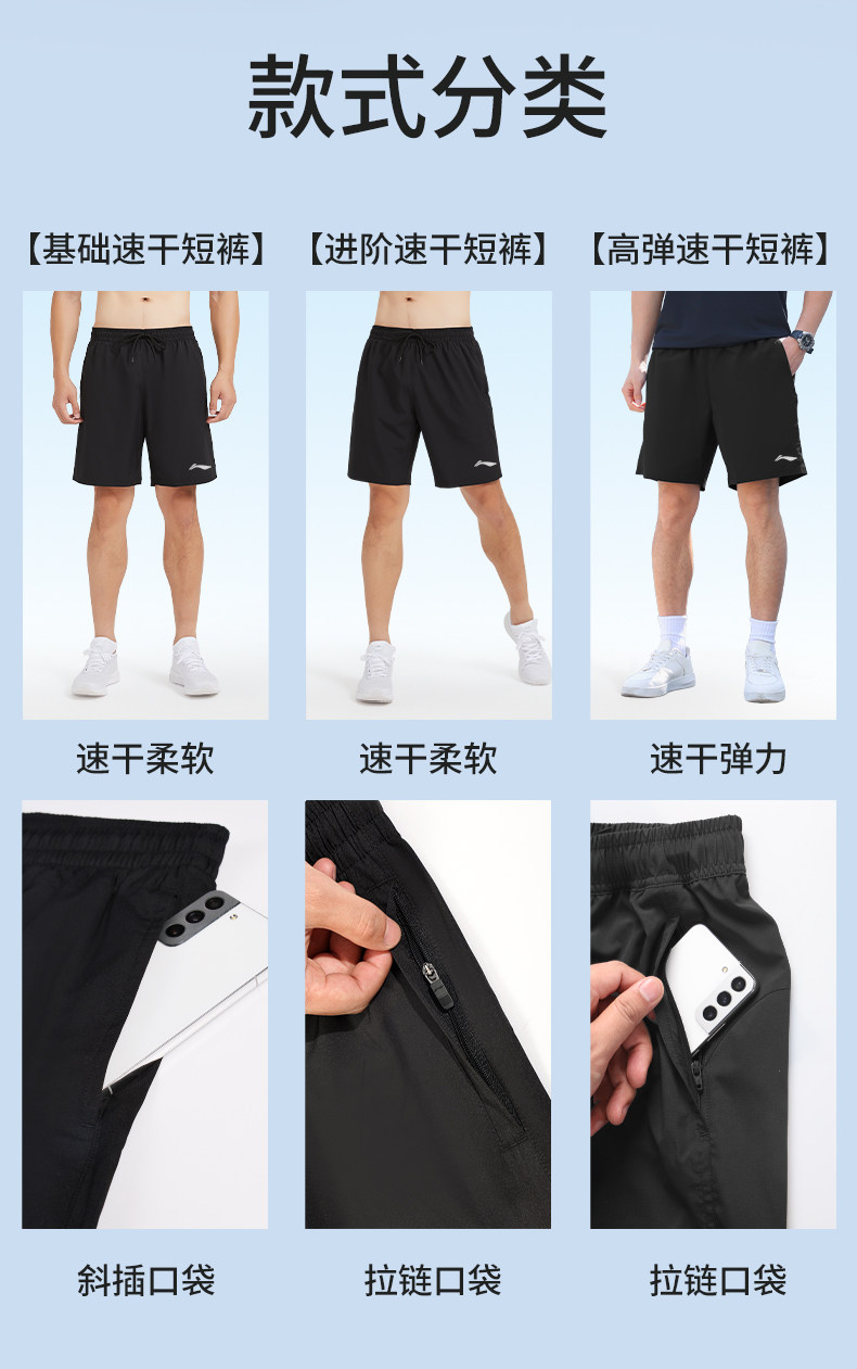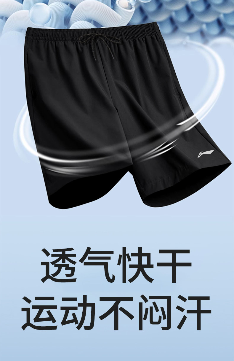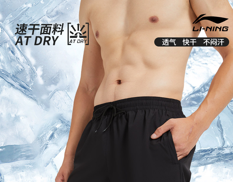 Li-Ning Men's Quick-Dry Sports Shorts 2026 Summer New Ice Silk Breathable Five-Point Shorts for Fitness Training and Running