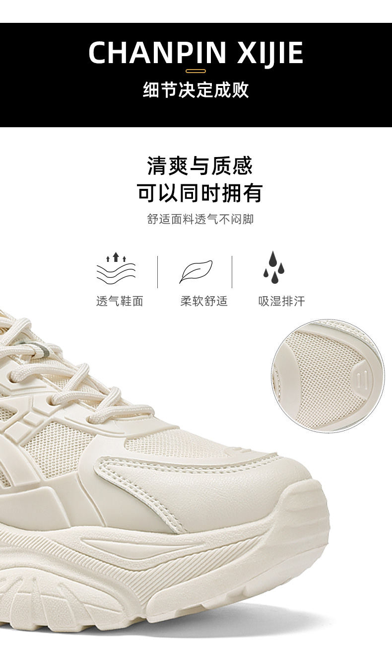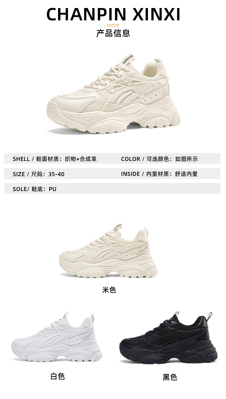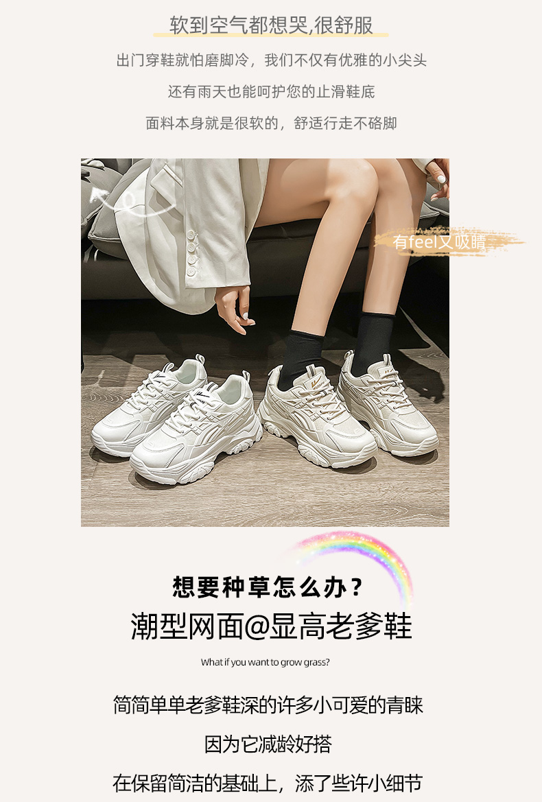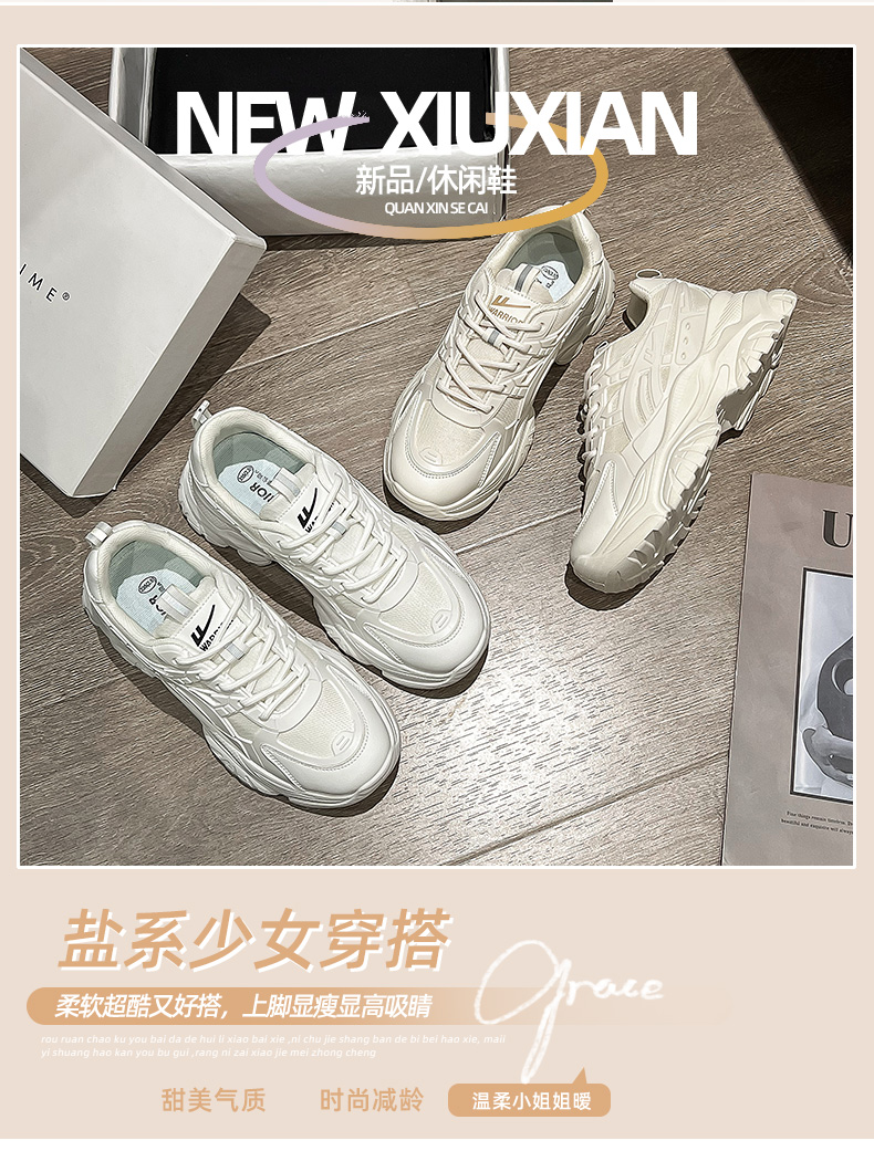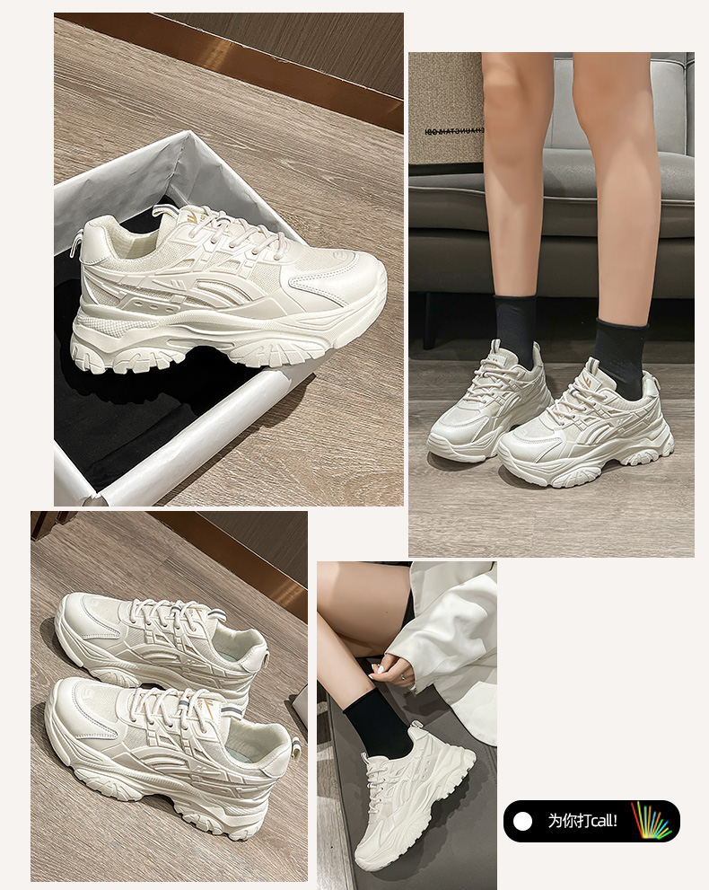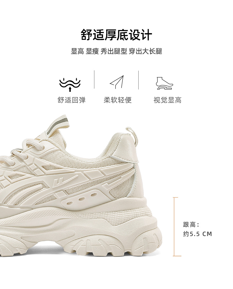 Hui Li Official Flagship Store Thick-Soled Dad Shoes Women's Shoes 2025 New Autumn Thick-Soled Height-Increasing White Sneakers Sports Shoes
