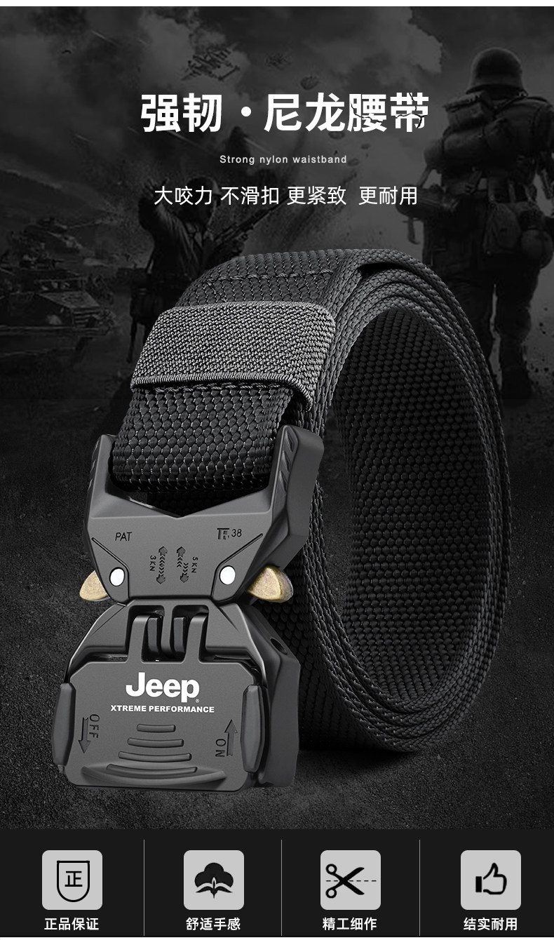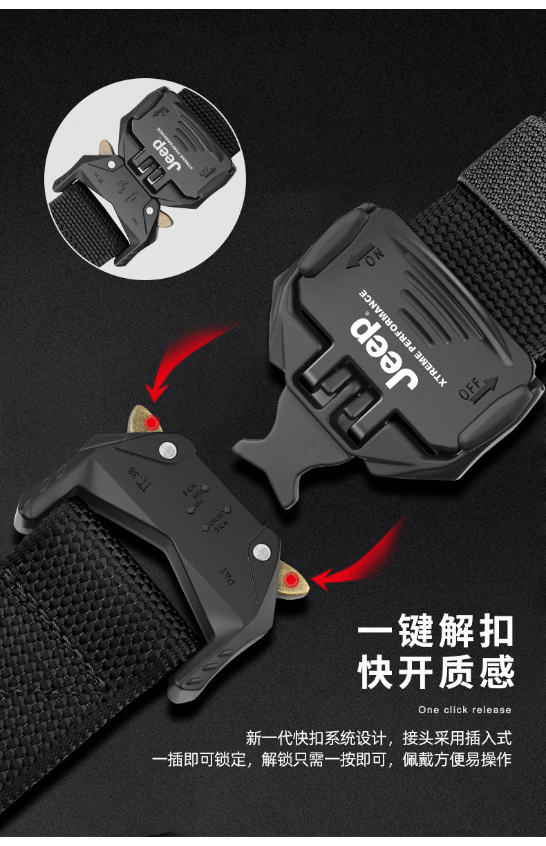 Jeep's New Men's Tactical Nylon Belt Quick-Release Outdoor Belt Canvas Trendy Belt for Young People