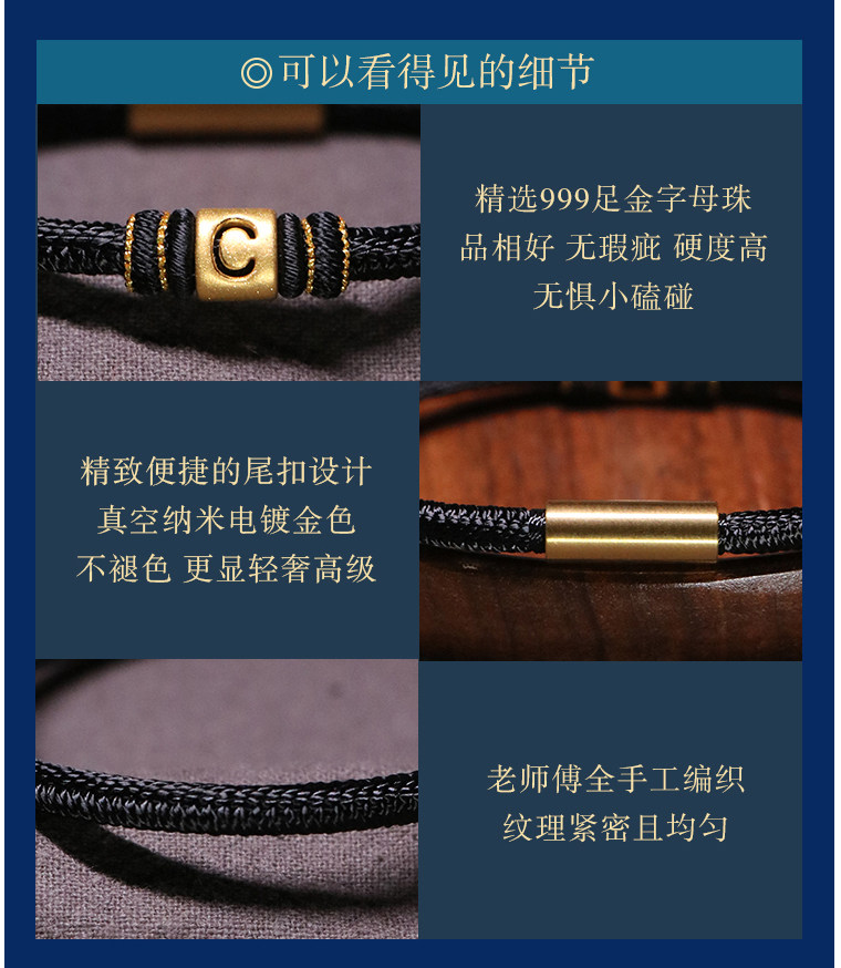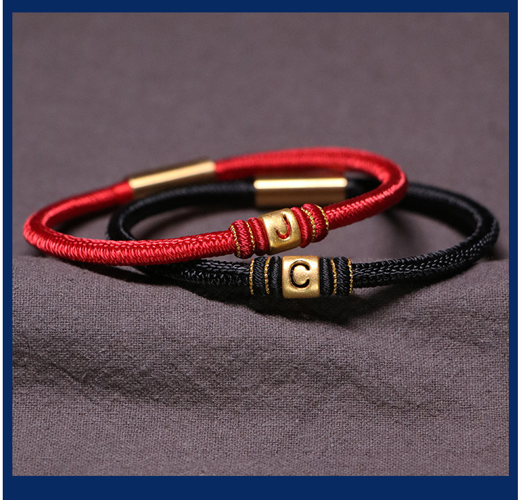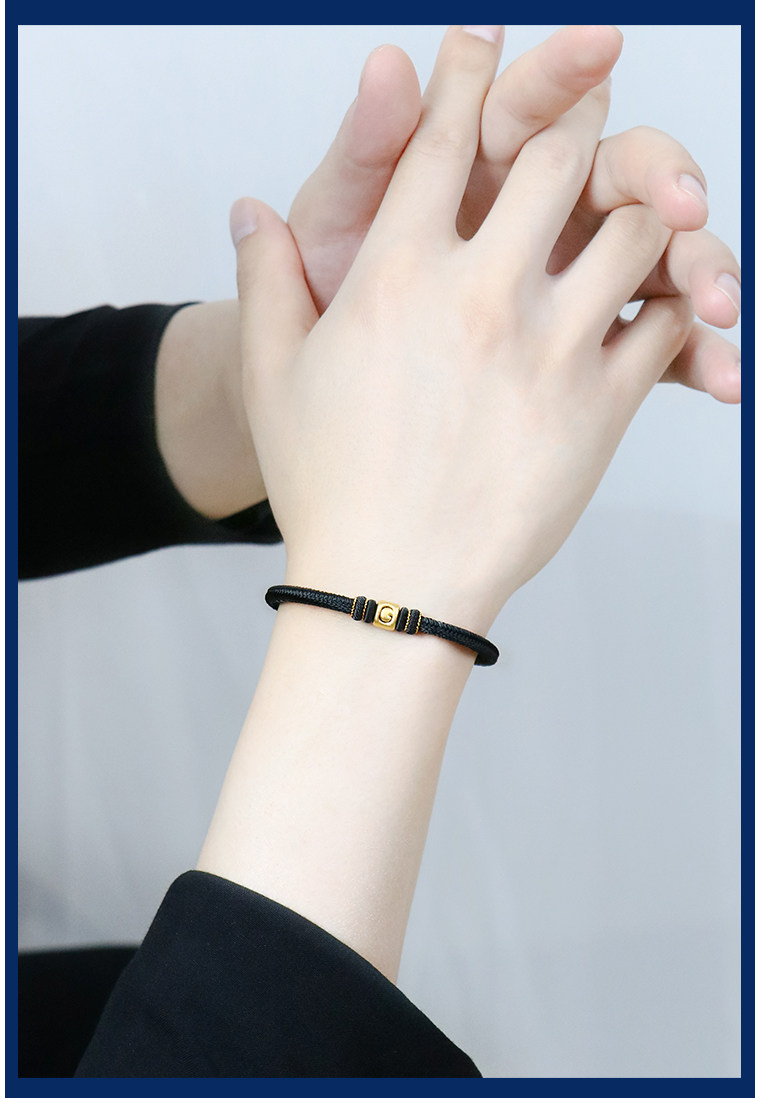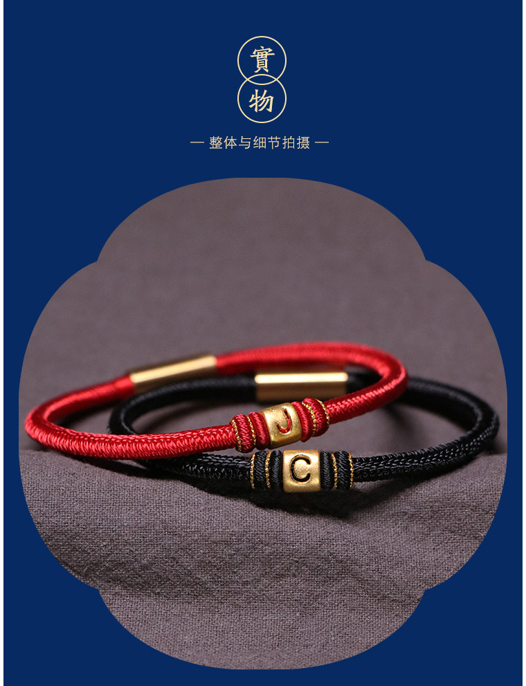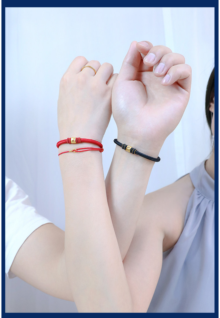 Gold Transfer Bead Bracelet for Men with Letter Charms, Nine-Fold Vajra Knot, Can Be Used to Braid Hair, Lightweight Pure Gold Couple's Hair Rope Bracelet