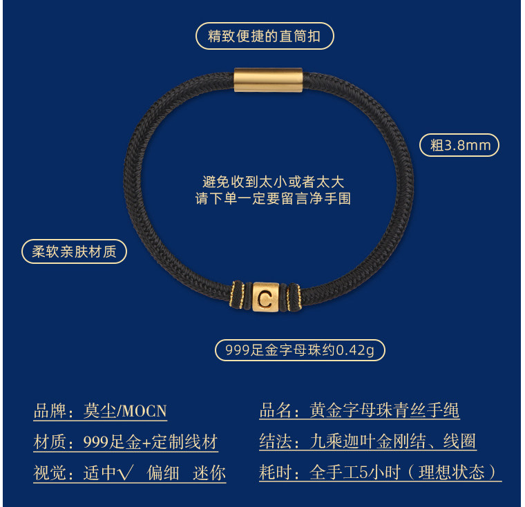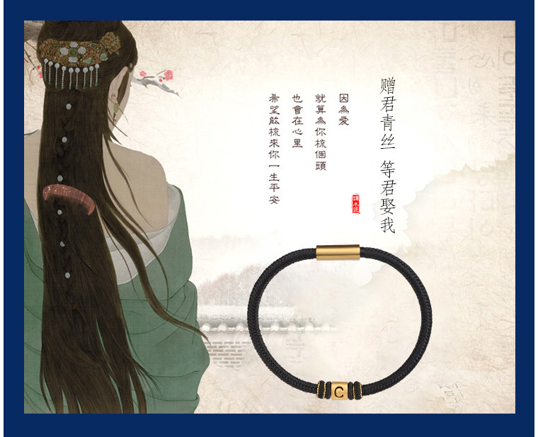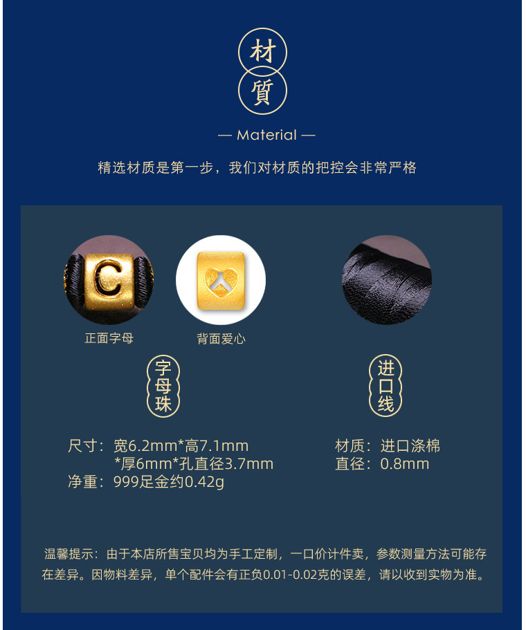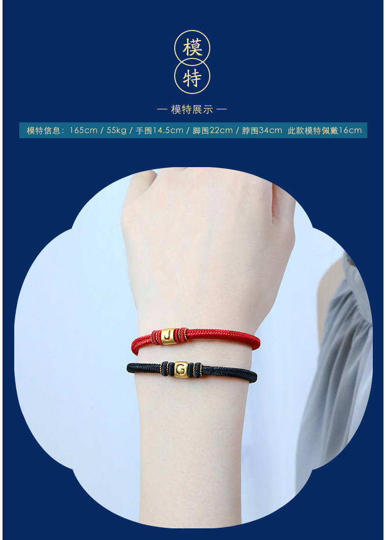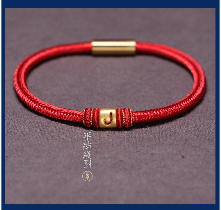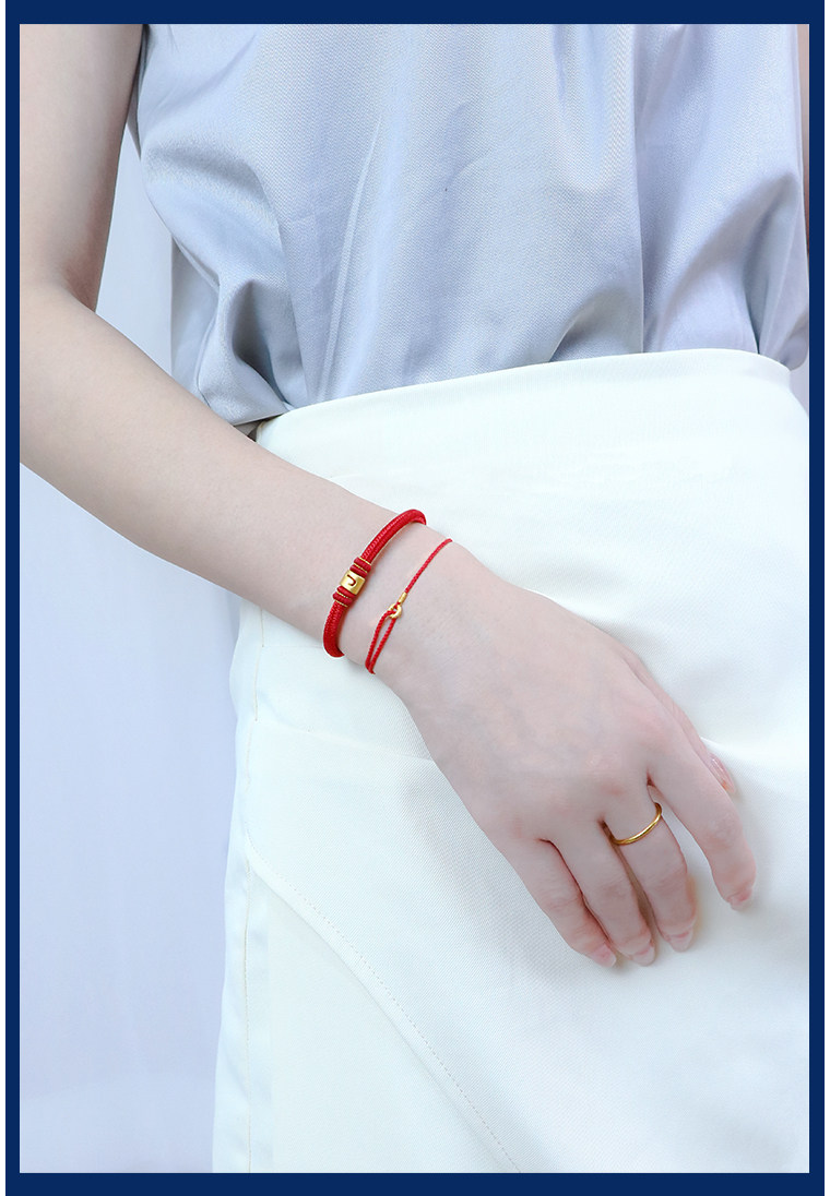Gold Transfer Bead Bracelet for Men with Letter Charms, Nine-Fold Vajra Knot, Can Be Used to Braid Hair, Lightweight Pure Gold Couple's Hair Rope Bracelet