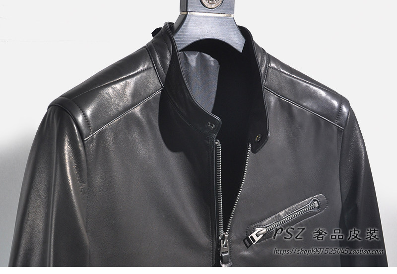 New Imported Genuine Goat Leather Jacket for Men, Slim Fit Motorcycle Short Style with Stand Collar, Men's Leather Coat