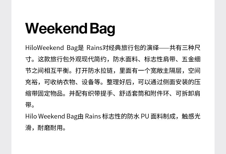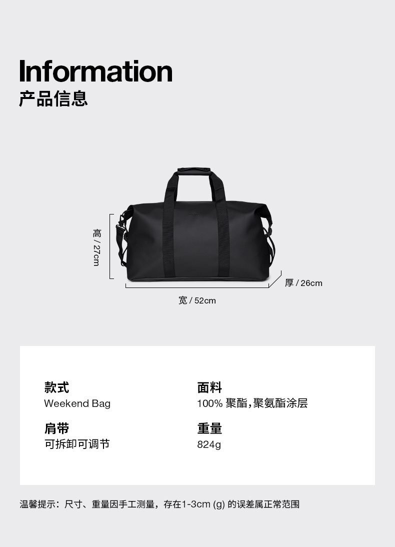 Rains Waterproof Gym Bag, Fashionable Travel Bag, Men's and Women's Shoulder Bag, Weekend Bag W3/14200