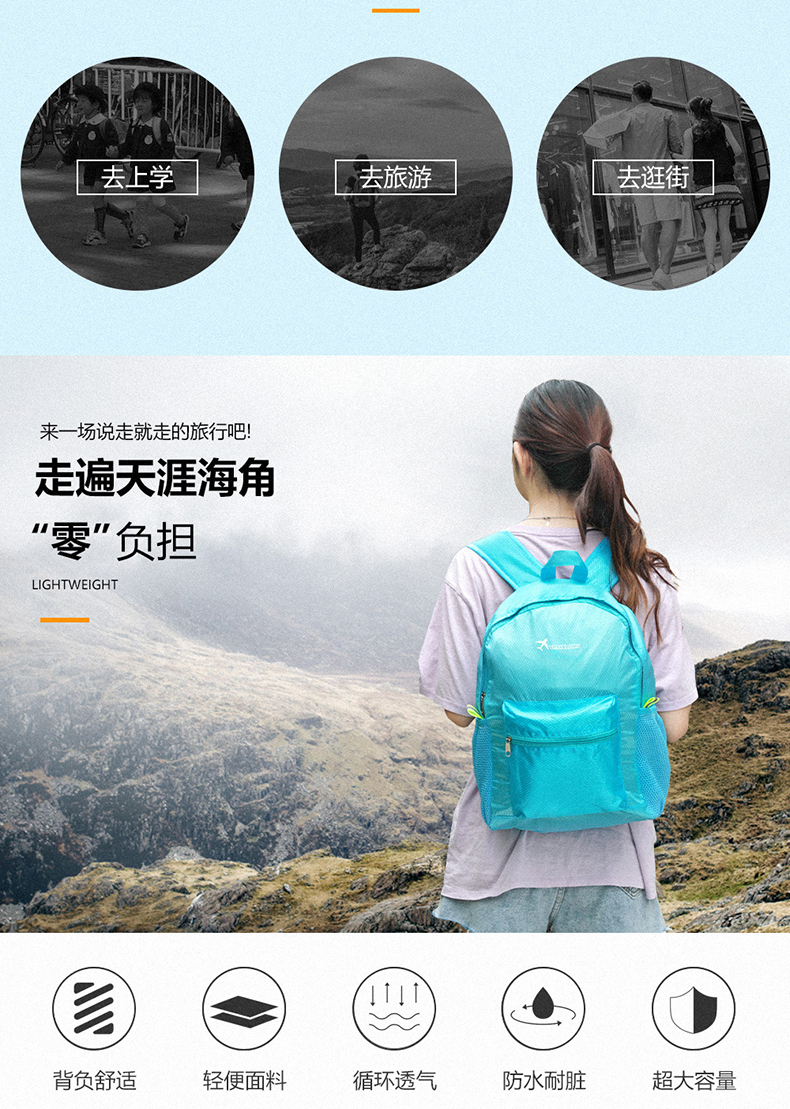 Travel Foldableable Backpack, Outdoor Men's and Women's Sports Storage Backpack, Large Capacity, Lightweight, Portable, Waterproof Mountaineering Bag