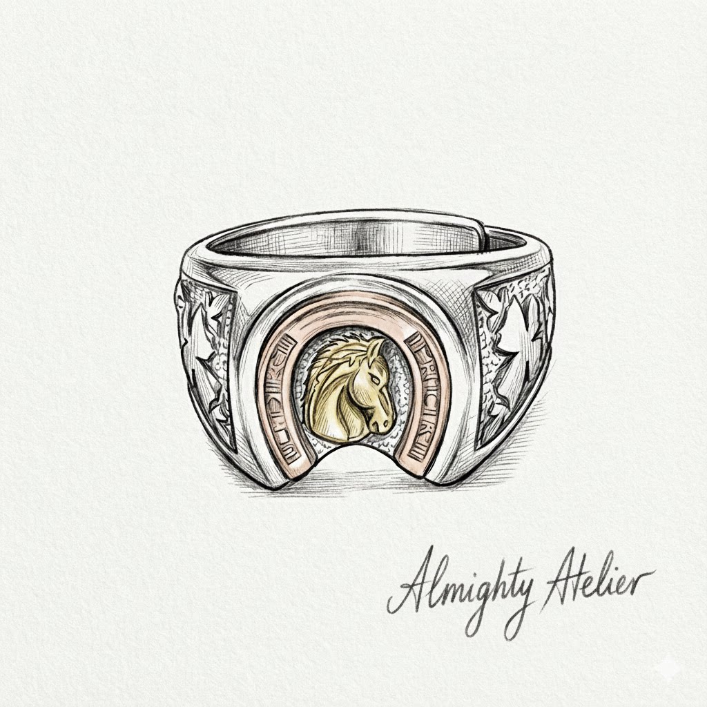 Almighty Alm Clover War Horse Horseshoe Sterling Silver Ring Domineering Simple Personalized Gold-Plated Tail Ring